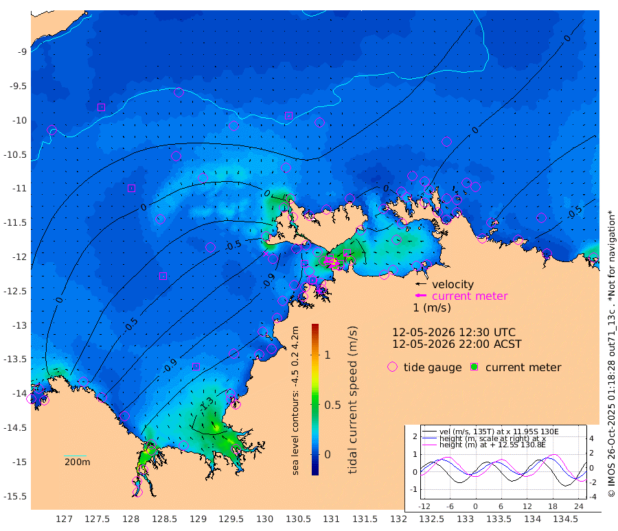 61cm/s -102T +4cm/s rms + 6cm/s 51T. Darwin_C1 52m 46cm/s -89T +4cm/s rms + 7cm/s -161T. Darwin_CW1 22m 47cm/s -107T +4cm/s rms + 8cm/s 61T. Darwin_CW2 34m 37cm/s -139T +3cm/s rms + 9cm/s 98T. Darwin_CW3 22m 69cm/s -90T +5cm/s rms + 7cm/s 88T. Darwin_C3 56m 38cm/s -115T +2cm/s rms + 9cm/s -126T. Darwin_CTbW 22m 9cm/s 161T +9cm/s rms + 2cm/s -110T. NWSLYN 196m 10cm/s -112T +1cm/s rms + 1cm/s -47T. DARBGF 30m 3cm/s 97T +7cm/s rms + 2cm/s -137T. ITFTIS 464m 3cm/s 105T +9cm/s rms + 1cm/s 74T. ITFMHB 146m 6cm/s 45T +4cm/s rms + 1cm/s -134T. ITFJBG 61m 6cm/s 102T +6cm/s rms + 4cm/s 121T. ITFFTB 108m 6cm/s -95T +4cm/s rms + 3cm/s 80T. NRSDAR 19m 3cm Carronade Island 7cm Guy Point 6cm Napier Broome Bay -61cm Lesueur Island -108cm Reveley Island -52cm Rocky Island -156cm Cape Domett -154cm Lacrosse Island -165cm Adolphus Island -130cm Pender Point -133cm Wyndham -11cm The Boxers -23cm Unnamed Shoal 32cm Loxton Shoal -161cm Pelican Island -3cm Calder Shoal 28cm Evans Shoal -199cm Quoin Island -153cm Port Keats -146cm Jones Point -183cm Catfish Island -109cm Cape Scott Offshore -72cm Cape Ford -121cm Anson Bay 17cm Goodrich Bank -99cm Peron Island North -100cm Point Jenny -99cm Native Point -109cm Fish Reef -114cm Tapa Bay -39cm Point Fawcett (Offshore) -128cm Burge Point -99cm Munkunuwa -94cm Beagle A -114cm Parsons Bank -132cm Fenton Patches 20cm Lynedoch Bank -121cm Hancox Shoal Area -143cm Nightcliff -135cm Darwin -115cm Charles Point Patches -111cm Glyde Point -108cm Chambers Bay -103cm Point Stuart -101cm Cape Hotham -98cm Christine Reef -114cm West Alligator Head -117cm East Field Island -84cm Two Hills Bay -62cm Newby Shoal -88cm Camp Point -109cm Medina Inlet South -26cm South Barlow Point -12cm St. Asaph Bay 17cm Cape Van Dieman 12cm Snake Bay 12cm Cache Point 30cm Echo Shoal -3cm Point Jahleel (Off) -31cm Cape Don 3cm Port Essington 1cm Smith Point - West 4cm NW Peacock Island 9cm North Of Jones Shoal 3cm Peacock Island -5cm Point David 2cm D'urville Point 7cm Money Shoal -7cm Copeland Island -12cm Cape Cockburn -5cm One Tree Point -3cm Hogmany Shoal -11cm New Year Island - West -8cm Grant Island -28cm Aurari Bay -27cm Cuthbert Point -19cm North Goulburn Island -35cm Paxie Shoal -51cm Entrance Island -66cm Yabooma Island