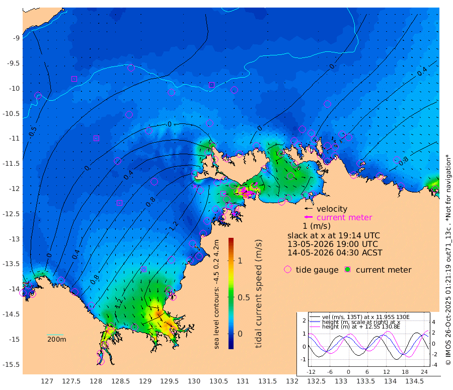 105cm/s 78T +4cm/s rms + 6cm/s 51T. Darwin_C1 52m 74cm/s 92T +4cm/s rms + 7cm/s -161T. Darwin_CW1 22m 71cm/s 73T +4cm/s rms + 8cm/s 61T. Darwin_CW2 34m 59cm/s 43T +3cm/s rms + 9cm/s 98T. Darwin_CW3 22m 105cm/s 89T +5cm/s rms + 7cm/s 88T. Darwin_C3 56m 54cm/s 65T +2cm/s rms + 9cm/s -126T. Darwin_CTbW 22m 3cm/s 10T +9cm/s rms + 2cm/s -110T. NWSLYN 196m 26cm/s 80T +1cm/s rms + 1cm/s -47T. DARBGF 30m 4cm/s -98T +7cm/s rms + 2cm/s -137T. ITFTIS 464m 6cm/s -140T +9cm/s rms + 1cm/s 74T. ITFMHB 146m 14cm/s -168T +4cm/s rms + 1cm/s -134T. ITFJBG 61m 6cm/s -154T +6cm/s rms + 4cm/s 121T. ITFFTB 108m 22cm/s 108T +4cm/s rms + 3cm/s 80T. NRSDAR 19m -46cm Carronade Island -41cm Guy Point -57cm Napier Broome Bay 38cm Lesueur Island 117cm Reveley Island 17cm Rocky Island 166cm Cape Domett 158cm Lacrosse Island 168cm Adolphus Island 101cm Pender Point 88cm Wyndham 8cm The Boxers 17cm Unnamed Shoal -47cm Loxton Shoal 199cm Pelican Island -1cm Calder Shoal -28cm Evans Shoal 191cm Quoin Island 187cm Port Keats 186cm Jones Point 156cm Catfish Island 148cm Cape Scott Offshore 157cm Cape Ford 169cm Anson Bay -9cm Goodrich Bank 139cm Peron Island North 150cm Point Jenny 147cm Native Point 151cm Fish Reef 170cm Tapa Bay 69cm Point Fawcett (Offshore) 173cm Burge Point 147cm Munkunuwa 127cm Beagle A 167cm Parsons Bank 173cm Fenton Patches -22cm Lynedoch Bank 177cm Hancox Shoal Area 189cm Nightcliff 184cm Darwin 170cm Charles Point Patches 136cm Glyde Point 119cm Chambers Bay 100cm Point Stuart 116cm Cape Hotham 107cm Christine Reef 107cm West Alligator Head 97cm East Field Island 89cm Two Hills Bay 65cm Newby Shoal 96cm Camp Point 153cm Medina Inlet South 49cm South Barlow Point 31cm St. Asaph Bay -6cm Cape Van Dieman -6cm Snake Bay -1cm Cache Point -53cm Echo Shoal 14cm Point Jahleel (Off) 49cm Cape Don 17cm Port Essington 22cm Smith Point - West 17cm NW Peacock Island 3cm North Of Jones Shoal 3cm Peacock Island 34cm Point David 23cm D'urville Point 13cm Money Shoal 38cm Copeland Island 44cm Cape Cockburn 28cm One Tree Point 48cm Hogmany Shoal 32cm New Year Island - West 35cm Grant Island 54cm Aurari Bay 65cm Cuthbert Point 50cm North Goulburn Island 72cm Paxie Shoal 92cm Entrance Island 114cm Yabooma Island