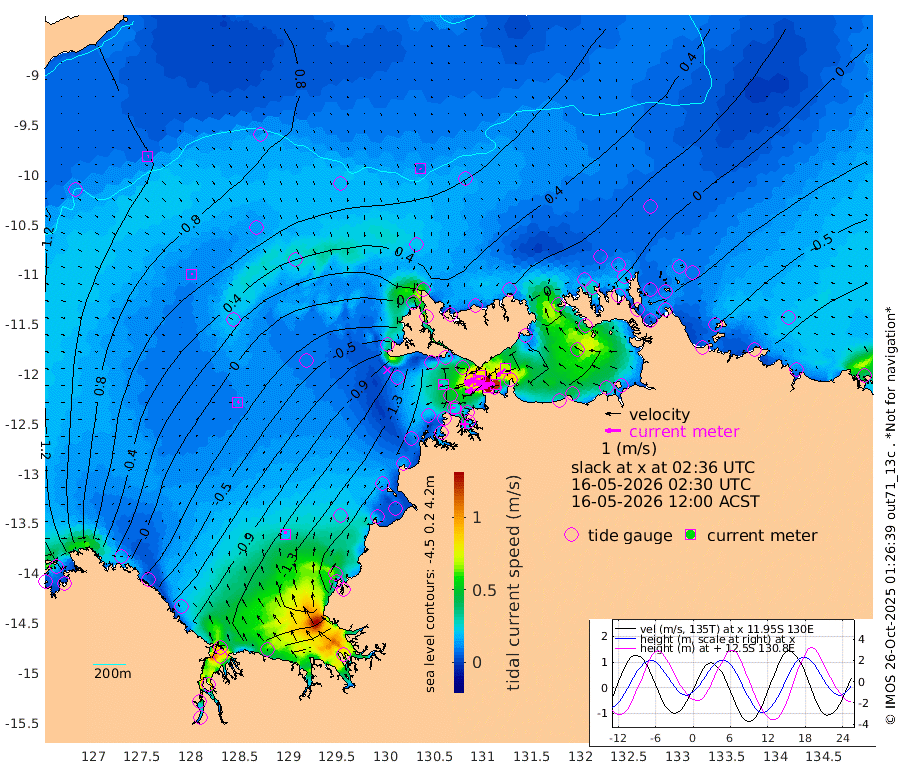 149cm/s -102T +4cm/s rms + 6cm/s 51T. Darwin_C1 52m 121cm/s -89T +4cm/s rms + 7cm/s -161T. Darwin_CW1 22m 91cm/s -107T +4cm/s rms + 8cm/s 61T. Darwin_CW2 34m 68cm/s -132T +3cm/s rms + 9cm/s 98T. Darwin_CW3 22m 134cm/s -91T +5cm/s rms + 7cm/s 88T. Darwin_C3 56m 81cm/s -115T +2cm/s rms + 9cm/s -126T. Darwin_CTbW 22m 6cm/s 150T +9cm/s rms + 2cm/s -110T. NWSLYN 196m 28cm/s -99T +1cm/s rms + 1cm/s -47T. DARBGF 30m 7cm/s 57T +7cm/s rms + 2cm/s -137T. ITFTIS 464m 10cm/s 58T +9cm/s rms + 1cm/s 74T. ITFMHB 146m 19cm/s 8T +4cm/s rms + 1cm/s -134T. ITFJBG 61m 12cm/s 50T +6cm/s rms + 4cm/s 121T. ITFFTB 108m 23cm/s -80T +4cm/s rms + 3cm/s 80T. NRSDAR 19m 141cm Carronade Island 140cm Guy Point 145cm Napier Broome Bay 50cm Lesueur Island -83cm Reveley Island -22cm Rocky Island -144cm Cape Domett -121cm Lacrosse Island -135cm Adolphus Island -69cm Pender Point -34cm Wyndham 49cm The Boxers 27cm Unnamed Shoal 105cm Loxton Shoal -179cm Pelican Island 57cm Calder Shoal 77cm Evans Shoal -169cm Quoin Island -178cm Port Keats -180cm Jones Point -72cm Catfish Island -125cm Cape Scott Offshore -129cm Cape Ford -153cm Anson Bay 56cm Goodrich Bank -121cm Peron Island North -130cm Point Jenny -128cm Native Point -135cm Fish Reef -154cm Tapa Bay -30cm Point Fawcett (Offshore) -168cm Burge Point -157cm Munkunuwa -94cm Beagle A -172cm Parsons Bank -154cm Fenton Patches 66cm Lynedoch Bank -167cm Hancox Shoal Area -177cm Nightcliff -181cm Darwin -152cm Charles Point Patches -118cm Glyde Point -82cm Chambers Bay -73cm Point Stuart -93cm Cape Hotham -75cm Christine Reef -79cm West Alligator Head -59cm East Field Island -62cm Two Hills Bay -14cm Newby Shoal -64cm Camp Point -147cm Medina Inlet South -21cm South Barlow Point 10cm St. Asaph Bay 50cm Cape Van Dieman 46cm Snake Bay 51cm Cache Point 129cm Echo Shoal 29cm Point Jahleel (Off) -19cm Cape Don 19cm Port Essington 18cm Smith Point - West 23cm NW Peacock Island 41cm North Of Jones Shoal 12cm Peacock Island -4cm Point David 14cm D'urville Point 27cm Money Shoal -9cm Copeland Island -7cm Cape Cockburn 2cm One Tree Point -2cm Hogmany Shoal 5cm New Year Island - West -3cm Grant Island -26cm Aurari Bay -40cm Cuthbert Point -22cm North Goulburn Island -54cm Paxie Shoal -71cm Entrance Island -95cm Yabooma Island