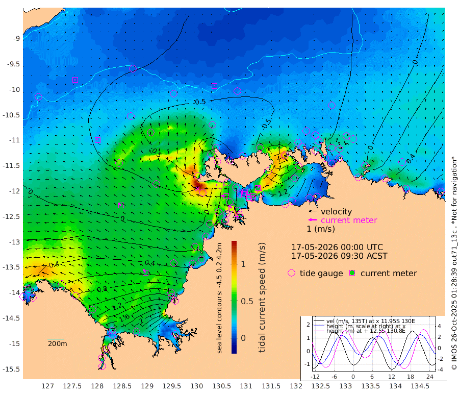 25cm/s 82T +4cm/s rms + 6cm/s 51T. Darwin_C1 52m 44cm/s 88T +4cm/s rms + 7cm/s -161T. Darwin_CW1 22m 4cm/s -112T +4cm/s rms + 8cm/s 61T. Darwin_CW2 34m 44cm/s 37T +3cm/s rms + 9cm/s 98T. Darwin_CW3 22m 28cm/s 98T +5cm/s rms + 7cm/s 88T. Darwin_C3 56m 5cm/s 83T +2cm/s rms + 9cm/s -126T. Darwin_CTbW 22m 7cm/s -6T +9cm/s rms + 2cm/s -110T. NWSLYN 196m 59cm/s -83T +1cm/s rms + 1cm/s -47T. DARBGF 30m 8cm/s -83T +7cm/s rms + 2cm/s -137T. ITFTIS 464m 16cm/s -32T +9cm/s rms + 1cm/s 74T. ITFMHB 146m 47cm/s -34T +4cm/s rms + 1cm/s -134T. ITFJBG 61m 47cm/s -49T +6cm/s rms + 4cm/s 121T. ITFFTB 108m 73cm/s -54T +4cm/s rms + 3cm/s 80T. NRSDAR 19m 115cm Carronade Island 127cm Guy Point 116cm Napier Broome Bay 127cm Lesueur Island 146cm Reveley Island 73cm Rocky Island 221cm Cape Domett 203cm Lacrosse Island 293cm Adolphus Island 346cm Pender Point 389cm Wyndham -1cm The Boxers -37cm Unnamed Shoal -7cm Loxton Shoal 200cm Pelican Island -20cm Calder Shoal -23cm Evans Shoal 370cm Quoin Island 130cm Port Keats 110cm Jones Point 380cm Catfish Island 44cm Cape Scott Offshore -34cm Cape Ford 31cm Anson Bay -37cm Goodrich Bank 17cm Peron Island North 4cm Point Jenny 0cm Native Point 5cm Fish Reef 16cm Tapa Bay -36cm Point Fawcett (Offshore) 28cm Burge Point -17cm Munkunuwa -7cm Beagle A 21cm Parsons Bank 29cm Fenton Patches -24cm Lynedoch Bank 50cm Hancox Shoal Area 45cm Nightcliff 52cm Darwin 35cm Charles Point Patches 96cm Glyde Point 172cm Chambers Bay 184cm Point Stuart 112cm Cape Hotham 162cm Christine Reef 209cm West Alligator Head 250cm East Field Island 127cm Two Hills Bay 9cm Newby Shoal 130cm Camp Point 10cm Medina Inlet South -48cm South Barlow Point -45cm St. Asaph Bay -46cm Cape Van Dieman -46cm Snake Bay -32cm Cache Point 9cm Echo Shoal -16cm Point Jahleel (Off) 23cm Cape Don -19cm Port Essington -21cm Smith Point - West -18cm NW Peacock Island -20cm North Of Jones Shoal -8cm Peacock Island -7cm Point David -22cm D'urville Point -10cm Money Shoal -2cm Copeland Island 1cm Cape Cockburn -3cm One Tree Point 16cm Hogmany Shoal 3cm New Year Island - West 4cm Grant Island 18cm Aurari Bay 44cm Cuthbert Point 17cm North Goulburn Island 63cm Paxie Shoal 73cm Entrance Island 108cm Yabooma Island