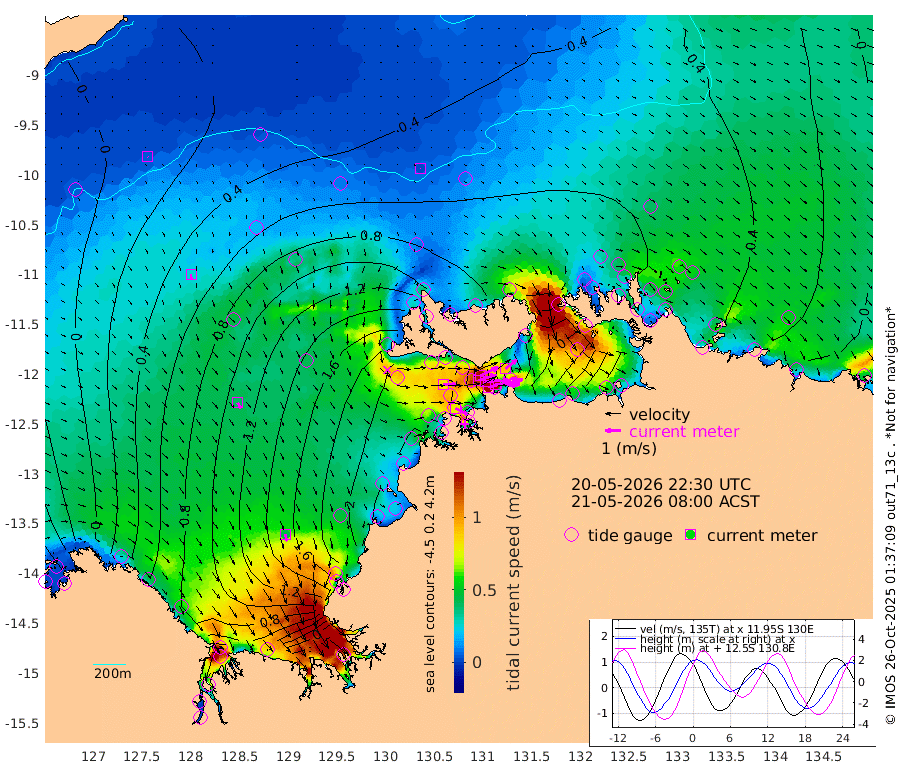 228cm/s 78T +4cm/s rms + 6cm/s 51T. Darwin_C1 52m 160cm/s 90T +4cm/s rms + 7cm/s -161T. Darwin_CW1 22m 122cm/s 74T +4cm/s rms + 8cm/s 61T. Darwin_CW2 34m 92cm/s 52T +3cm/s rms + 9cm/s 98T. Darwin_CW3 22m 165cm/s 89T +5cm/s rms + 7cm/s 88T. Darwin_C3 56m 126cm/s 65T +2cm/s rms + 9cm/s -126T. Darwin_CTbW 22m 1cm/s 141T +9cm/s rms + 2cm/s -110T. NWSLYN 196m 81cm/s 88T +1cm/s rms + 1cm/s -47T. DARBGF 30m 4cm/s 145T +7cm/s rms + 2cm/s -137T. ITFTIS 464m 26cm/s 179T +9cm/s rms + 1cm/s 74T. ITFMHB 146m 45cm/s 166T +4cm/s rms + 1cm/s -134T. ITFJBG 61m 39cm/s 147T +6cm/s rms + 4cm/s 121T. ITFFTB 108m 79cm/s 115T +4cm/s rms + 3cm/s 80T. NRSDAR 19m -84cm Carronade Island -86cm Guy Point -86cm Napier Broome Bay 7cm Lesueur Island 105cm Reveley Island 89cm Rocky Island 118cm Cape Domett 112cm Lacrosse Island 68cm Adolphus Island -43cm Pender Point -100cm Wyndham 68cm The Boxers 80cm Unnamed Shoal 22cm Loxton Shoal 147cm Pelican Island 76cm Calder Shoal 42cm Evans Shoal 59cm Quoin Island 200cm Port Keats 186cm Jones Point -26cm Catfish Island 197cm Cape Scott Offshore 270cm Cape Ford 221cm Anson Bay 57cm Goodrich Bank 214cm Peron Island North 216cm Point Jenny 217cm Native Point 229cm Fish Reef 232cm Tapa Bay 161cm Point Fawcett (Offshore) 237cm Burge Point 249cm Munkunuwa 200cm Beagle A 232cm Parsons Bank 227cm Fenton Patches 34cm Lynedoch Bank 208cm Hancox Shoal Area 231cm Nightcliff 236cm Darwin 227cm Charles Point Patches 122cm Glyde Point 17cm Chambers Bay 1cm Point Stuart 80cm Cape Hotham 24cm Christine Reef -6cm West Alligator Head -56cm East Field Island 39cm Two Hills Bay 142cm Newby Shoal 29cm Camp Point 236cm Medina Inlet South 148cm South Barlow Point 119cm St. Asaph Bay 66cm Cape Van Dieman 71cm Snake Bay 61cm Cache Point -10cm Echo Shoal 63cm Point Jahleel (Off) 70cm Cape Don 58cm Port Essington 65cm Smith Point - West 50cm NW Peacock Island 48cm North Of Jones Shoal 17cm Peacock Island 33cm Point David 57cm D'urville Point 26cm Money Shoal 29cm Copeland Island 45cm Cape Cockburn 38cm One Tree Point 28cm Hogmany Shoal 29cm New Year Island - West 33cm Grant Island 22cm Aurari Bay 12cm Cuthbert Point 26cm North Goulburn Island -3cm Paxie Shoal -11cm Entrance Island -44cm Yabooma Island
