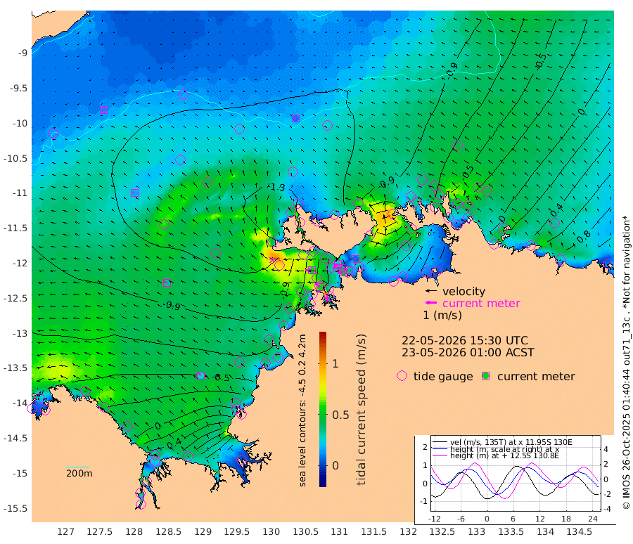49cm/s -104T +4cm/s rms + 6cm/s 51T. Darwin_C1 52m 35cm/s -84T +4cm/s rms + 7cm/s -161T. Darwin_CW1 22m 34cm/s -106T +4cm/s rms + 8cm/s 61T. Darwin_CW2 34m 8cm/s -38T +3cm/s rms + 9cm/s 98T. Darwin_CW3 22m 41cm/s -93T +5cm/s rms + 7cm/s 88T. Darwin_C3 56m 28cm/s -115T +2cm/s rms + 9cm/s -126T. Darwin_CTbW 22m 10cm/s -37T +9cm/s rms + 2cm/s -110T. NWSLYN 196m 55cm/s -89T +1cm/s rms + 1cm/s -47T. DARBGF 30m 12cm/s -120T +7cm/s rms + 2cm/s -137T. ITFTIS 464m 15cm/s -47T +9cm/s rms + 1cm/s 74T. ITFMHB 146m 27cm/s -37T +4cm/s rms + 1cm/s -134T. ITFJBG 61m 36cm/s -60T +6cm/s rms + 4cm/s 121T. ITFFTB 108m 57cm/s -57T +4cm/s rms + 3cm/s 80T. NRSDAR 19m -23cm Carronade Island -23cm Guy Point -34cm Napier Broome Bay -27cm Lesueur Island 1cm Reveley Island -39cm Rocky Island 43cm Cape Domett 31cm Lacrosse Island 94cm Adolphus Island 129cm Pender Point 160cm Wyndham -107cm The Boxers -105cm Unnamed Shoal -117cm Loxton Shoal 48cm Pelican Island -121cm Calder Shoal -104cm Evans Shoal 132cm Quoin Island -16cm Port Keats 3cm Jones Point 186cm Catfish Island -68cm Cape Scott Offshore -128cm Cape Ford -73cm Anson Bay -105cm Goodrich Bank -77cm Peron Island North -83cm Point Jenny -88cm Native Point -81cm Fish Reef -79cm Tapa Bay -118cm Point Fawcett (Offshore) -69cm Burge Point -94cm Munkunuwa -94cm Beagle A -57cm Parsons Bank -65cm Fenton Patches -94cm Lynedoch Bank -39cm Hancox Shoal Area -56cm Nightcliff -57cm Darwin -79cm Charles Point Patches 9cm Glyde Point 94cm Chambers Bay 110cm Point Stuart 38cm Cape Hotham 76cm Christine Reef 129cm West Alligator Head 161cm East Field Island 57cm Two Hills Bay -112cm Newby Shoal 47cm Camp Point -89cm Medina Inlet South -123cm South Barlow Point -122cm St. Asaph Bay -108cm Cape Van Dieman -111cm Snake Bay -96cm Cache Point -99cm Echo Shoal -77cm Point Jahleel (Off) -35cm Cape Don -65cm Port Essington -64cm Smith Point - West -56cm NW Peacock Island -76cm North Of Jones Shoal -24cm Peacock Island -19cm Point David -55cm D'urville Point -47cm Money Shoal -9cm Copeland Island -16cm Cape Cockburn -28cm One Tree Point -5cm Hogmany Shoal -23cm New Year Island - West -17cm Grant Island 18cm Aurari Bay 46cm Cuthbert Point 12cm North Goulburn Island 57cm Paxie Shoal 96cm Entrance Island 150cm Yabooma Island