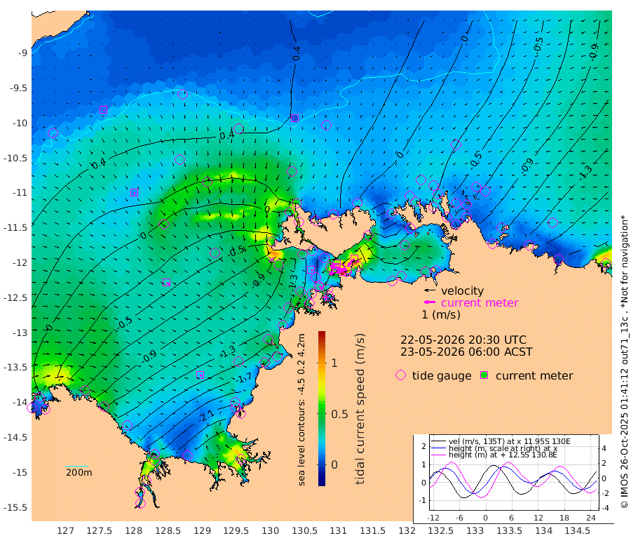122cm/s -101T +4cm/s rms + 6cm/s 51T. Darwin_C1 52m 87cm/s -92T +4cm/s rms + 7cm/s -161T. Darwin_CW1 22m 43cm/s -105T +4cm/s rms + 8cm/s 61T. Darwin_CW2 34m 83cm/s -136T +3cm/s rms + 9cm/s 98T. Darwin_CW3 22m 85cm/s -90T +5cm/s rms + 7cm/s 88T. Darwin_C3 56m 67cm/s -116T +2cm/s rms + 9cm/s -126T. Darwin_CTbW 22m 4cm/s -104T +9cm/s rms + 2cm/s -110T. NWSLYN 196m 21cm/s 107T +1cm/s rms + 1cm/s -47T. DARBGF 30m 10cm/s 123T +7cm/s rms + 2cm/s -137T. ITFTIS 464m 15cm/s 147T +9cm/s rms + 1cm/s 74T. ITFMHB 146m 20cm/s 124T +4cm/s rms + 1cm/s -134T. ITFJBG 61m 29cm/s 124T +6cm/s rms + 4cm/s 121T. ITFFTB 108m 29cm/s 135T +4cm/s rms + 3cm/s 80T. NRSDAR 19m -22cm Carronade Island -24cm Guy Point -31cm Napier Broome Bay -76cm Lesueur Island -137cm Reveley Island -54cm Rocky Island -218cm Cape Domett -192cm Lacrosse Island -235cm Adolphus Island -249cm Pender Point -256cm Wyndham -7cm The Boxers -20cm Unnamed Shoal 43cm Loxton Shoal -221cm Pelican Island 20cm Calder Shoal 35cm Evans Shoal -296cm Quoin Island -187cm Port Keats -185cm Jones Point -318cm Catfish Island -112cm Cape Scott Offshore -82cm Cape Ford -123cm Anson Bay 27cm Goodrich Bank -104cm Peron Island North -96cm Point Jenny -92cm Native Point -103cm Fish Reef -114cm Tapa Bay -27cm Point Fawcett (Offshore) -129cm Burge Point -90cm Munkunuwa -65cm Beagle A -132cm Parsons Bank -114cm Fenton Patches 24cm Lynedoch Bank -138cm Hancox Shoal Area -132cm Nightcliff -153cm Darwin -128cm Charles Point Patches -149cm Glyde Point -175cm Chambers Bay -186cm Point Stuart -148cm Cape Hotham -157cm Christine Reef -203cm West Alligator Head -211cm East Field Island -148cm Two Hills Bay -43cm Newby Shoal -139cm Camp Point -109cm Medina Inlet South -7cm South Barlow Point 11cm St. Asaph Bay 26cm Cape Van Dieman 20cm Snake Bay 14cm Cache Point 57cm Echo Shoal -6cm Point Jahleel (Off) -66cm Cape Don -21cm Port Essington -16cm Smith Point - West -19cm NW Peacock Island -2cm North Of Jones Shoal -3cm Peacock Island -56cm Point David -23cm D'urville Point -25cm Money Shoal -59cm Copeland Island -79cm Cape Cockburn -53cm One Tree Point -86cm Hogmany Shoal -56cm New Year Island - West -63cm Grant Island -83cm Aurari Bay -117cm Cuthbert Point -91cm North Goulburn Island -139cm Paxie Shoal -151cm Entrance Island -185cm Yabooma Island