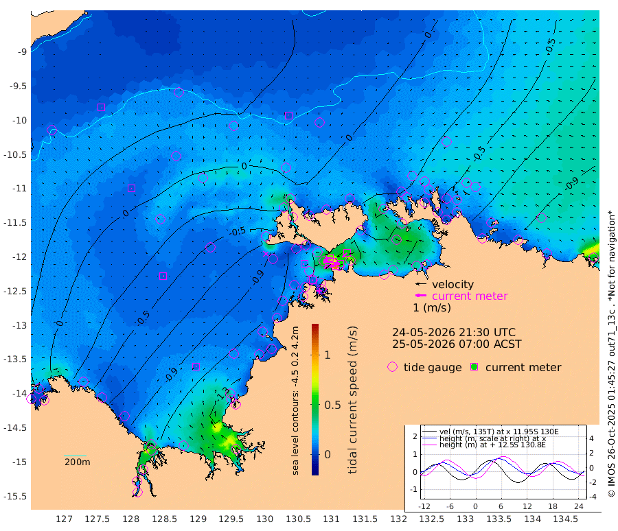 105cm/s -102T +4cm/s rms + 6cm/s 51T. Darwin_C1 52m 59cm/s -90T +4cm/s rms + 7cm/s -161T. Darwin_CW1 22m 49cm/s -106T +4cm/s rms + 8cm/s 61T. Darwin_CW2 34m 54cm/s -132T +3cm/s rms + 9cm/s 98T. Darwin_CW3 22m 74cm/s -91T +5cm/s rms + 7cm/s 88T. Darwin_C3 56m 62cm/s -116T +2cm/s rms + 9cm/s -126T. Darwin_CTbW 22m 4cm/s -50T +9cm/s rms + 2cm/s -110T. NWSLYN 196m 12cm/s -102T +1cm/s rms + 1cm/s -47T. DARBGF 30m 4cm/s 130T +7cm/s rms + 2cm/s -137T. ITFTIS 464m 4cm/s 118T +9cm/s rms + 1cm/s 74T. ITFMHB 146m 7cm/s 24T +4cm/s rms + 1cm/s -134T. ITFJBG 61m 5cm/s 81T +6cm/s rms + 4cm/s 121T. ITFFTB 108m 8cm/s -92T +4cm/s rms + 3cm/s 80T. NRSDAR 19m 25cm Carronade Island 28cm Guy Point 17cm Napier Broome Bay -21cm Lesueur Island -70cm Reveley Island -30cm Rocky Island -113cm Cape Domett -100cm Lacrosse Island -98cm Adolphus Island -90cm Pender Point -78cm Wyndham -10cm The Boxers -33cm Unnamed Shoal 32cm Loxton Shoal -127cm Pelican Island 6cm Calder Shoal 19cm Evans Shoal -132cm Quoin Island -119cm Port Keats -126cm Jones Point -167cm Catfish Island -93cm Cape Scott Offshore -76cm Cape Ford -107cm Anson Bay 9cm Goodrich Bank -91cm Peron Island North -87cm Point Jenny -85cm Native Point -95cm Fish Reef -100cm Tapa Bay -45cm Point Fawcett (Offshore) -102cm Burge Point -92cm Munkunuwa -62cm Beagle A -108cm Parsons Bank -90cm Fenton Patches 13cm Lynedoch Bank -104cm Hancox Shoal Area -103cm Nightcliff -118cm Darwin -104cm Charles Point Patches -94cm Glyde Point -89cm Chambers Bay -91cm Point Stuart -86cm Cape Hotham -72cm Christine Reef -97cm West Alligator Head -88cm East Field Island -80cm Two Hills Bay -32cm Newby Shoal -69cm Camp Point -98cm Medina Inlet South -27cm South Barlow Point -12cm St. Asaph Bay 5cm Cape Van Dieman 0cm Snake Bay 0cm Cache Point 48cm Echo Shoal -10cm Point Jahleel (Off) -46cm Cape Don -22cm Port Essington -18cm Smith Point - West -18cm NW Peacock Island -8cm North Of Jones Shoal -5cm Peacock Island -42cm Point David -22cm D'urville Point -18cm Money Shoal -42cm Copeland Island -54cm Cape Cockburn -39cm One Tree Point -56cm Hogmany Shoal -38cm New Year Island - West -43cm Grant Island -56cm Aurari Bay -71cm Cuthbert Point -61cm North Goulburn Island -84cm Paxie Shoal -87cm Entrance Island -101cm Yabooma Island
