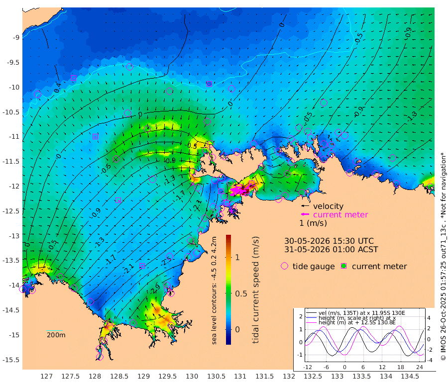 171cm/s -101T +4cm/s rms + 6cm/s 51T. Darwin_C1 52m 160cm/s -92T +4cm/s rms + 7cm/s -161T. Darwin_CW1 22m 76cm/s -105T +4cm/s rms + 8cm/s 61T. Darwin_CW2 34m 96cm/s -137T +3cm/s rms + 9cm/s 98T. Darwin_CW3 22m 147cm/s -90T +5cm/s rms + 7cm/s 88T. Darwin_C3 56m 87cm/s -116T +2cm/s rms + 9cm/s -126T. Darwin_CTbW 22m 7cm/s -163T +9cm/s rms + 2cm/s -110T. NWSLYN 196m 9cm/s 177T +1cm/s rms + 1cm/s -47T. DARBGF 30m 11cm/s 137T +7cm/s rms + 2cm/s -137T. ITFTIS 464m 16cm/s 156T +9cm/s rms + 1cm/s 74T. ITFMHB 146m 15cm/s 108T +4cm/s rms + 1cm/s -134T. ITFJBG 61m 27cm/s 128T +6cm/s rms + 4cm/s 121T. ITFFTB 108m 16cm/s 153T +4cm/s rms + 3cm/s 80T. NRSDAR 19m -8cm Carronade Island -5cm Guy Point -13cm Napier Broome Bay -118cm Lesueur Island -201cm Reveley Island -95cm Rocky Island -297cm Cape Domett -276cm Lacrosse Island -314cm Adolphus Island -280cm Pender Point -280cm Wyndham -45cm The Boxers -64cm Unnamed Shoal 21cm Loxton Shoal -303cm Pelican Island -21cm Calder Shoal 12cm Evans Shoal -394cm Quoin Island -285cm Port Keats -277cm Jones Point -370cm Catfish Island -197cm Cape Scott Offshore -187cm Cape Ford -215cm Anson Bay -2cm Goodrich Bank -196cm Peron Island North -174cm Point Jenny -171cm Native Point -200cm Fish Reef -202cm Tapa Bay -90cm Point Fawcett (Offshore) -230cm Burge Point -180cm Munkunuwa -152cm Beagle A -221cm Parsons Bank -216cm Fenton Patches 0cm Lynedoch Bank -222cm Hancox Shoal Area -231cm Nightcliff -262cm Darwin -232cm Charles Point Patches -216cm Glyde Point -198cm Chambers Bay -212cm Point Stuart -201cm Cape Hotham -181cm Christine Reef -228cm West Alligator Head -230cm East Field Island -181cm Two Hills Bay -117cm Newby Shoal -176cm Camp Point -207cm Medina Inlet South -68cm South Barlow Point -39cm St. Asaph Bay -3cm Cape Van Dieman -16cm Snake Bay -15cm Cache Point 38cm Echo Shoal -37cm Point Jahleel (Off) -98cm Cape Don -48cm Port Essington -41cm Smith Point - West -41cm NW Peacock Island -30cm North Of Jones Shoal -12cm Peacock Island -69cm Point David -45cm D'urville Point -43cm Money Shoal -71cm Copeland Island -102cm Cape Cockburn -72cm One Tree Point -93cm Hogmany Shoal -75cm New Year Island - West -77cm Grant Island -100cm Aurari Bay -120cm Cuthbert Point -99cm North Goulburn Island -138cm Paxie Shoal -143cm Entrance Island -171cm Yabooma Island