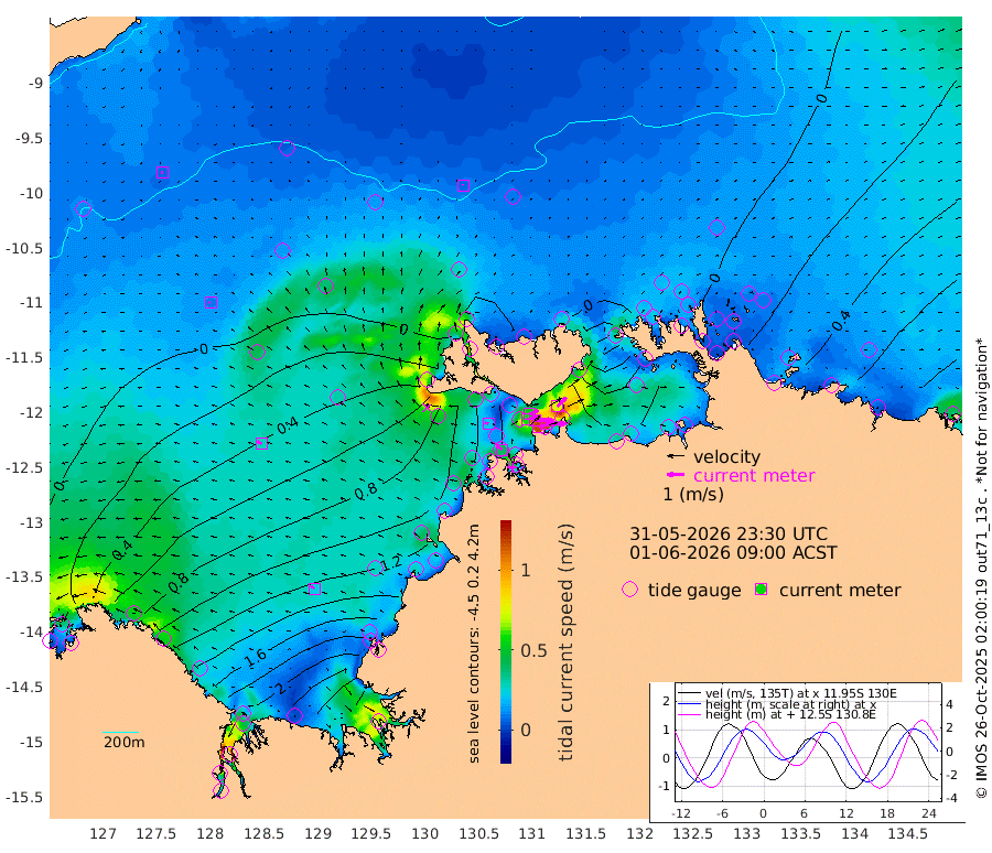 116cm/s 79T +4cm/s rms + 6cm/s 51T. Darwin_C1 52m 118cm/s 91T +4cm/s rms + 7cm/s -161T. Darwin_CW1 22m 59cm/s 71T +4cm/s rms + 8cm/s 61T. Darwin_CW2 34m 76cm/s 46T +3cm/s rms + 9cm/s 98T. Darwin_CW3 22m 113cm/s 91T +5cm/s rms + 7cm/s 88T. Darwin_C3 56m 54cm/s 66T +2cm/s rms + 9cm/s -126T. Darwin_CTbW 22m 6cm/s -3T +9cm/s rms + 2cm/s -110T. NWSLYN 196m 22cm/s -67T +1cm/s rms + 1cm/s -47T. DARBGF 30m 6cm/s -89T +7cm/s rms + 2cm/s -137T. ITFTIS 464m 9cm/s -68T +9cm/s rms + 1cm/s 74T. ITFMHB 146m 23cm/s -49T +4cm/s rms + 1cm/s -134T. ITFJBG 61m 29cm/s -58T +6cm/s rms + 4cm/s 121T. ITFFTB 108m 40cm/s -49T +4cm/s rms + 3cm/s 80T. NRSDAR 19m 60cm Carronade Island 66cm Guy Point 62cm Napier Broome Bay 120cm Lesueur Island 182cm Reveley Island 105cm Rocky Island 259cm Cape Domett 241cm Lacrosse Island 291cm Adolphus Island 302cm Pender Point 313cm Wyndham 27cm The Boxers 13cm Unnamed Shoal -6cm Loxton Shoal 255cm Pelican Island 10cm Calder Shoal -8cm Evans Shoal 367cm Quoin Island 207cm Port Keats 201cm Jones Point 372cm Catfish Island 130cm Cape Scott Offshore 107cm Cape Ford 129cm Anson Bay -14cm Goodrich Bank 118cm Peron Island North 98cm Point Jenny 95cm Native Point 114cm Fish Reef 119cm Tapa Bay 42cm Point Fawcett (Offshore) 133cm Burge Point 99cm Munkunuwa 80cm Beagle A 125cm Parsons Bank 126cm Fenton Patches -12cm Lynedoch Bank 136cm Hancox Shoal Area 137cm Nightcliff 157cm Darwin 135cm Charles Point Patches 150cm Glyde Point 173cm Chambers Bay 185cm Point Stuart 148cm Cape Hotham 156cm Christine Reef 207cm West Alligator Head 222cm East Field Island 145cm Two Hills Bay 61cm Newby Shoal 137cm Camp Point 118cm Medina Inlet South 17cm South Barlow Point 7cm St. Asaph Bay -17cm Cape Van Dieman -14cm Snake Bay -5cm Cache Point -6cm Echo Shoal 12cm Point Jahleel (Off) 53cm Cape Don 8cm Port Essington 6cm Smith Point - West 3cm NW Peacock Island -2cm North Of Jones Shoal -1cm Peacock Island 12cm Point David 2cm D'urville Point -1cm Money Shoal 13cm Copeland Island 24cm Cape Cockburn 16cm One Tree Point 33cm Hogmany Shoal 17cm New Year Island - West 20cm Grant Island 32cm Aurari Bay 49cm Cuthbert Point 32cm North Goulburn Island 64cm Paxie Shoal 70cm Entrance Island 88cm Yabooma Island