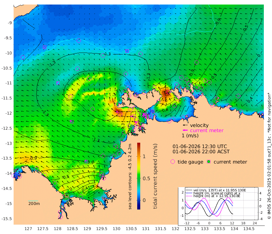 57cm/s -104T +4cm/s rms + 6cm/s 51T. Darwin_C1 52m 22cm/s -82T +4cm/s rms + 7cm/s -161T. Darwin_CW1 22m 50cm/s -106T +4cm/s rms + 8cm/s 61T. Darwin_CW2 34m 6cm/s -37T +3cm/s rms + 9cm/s 98T. Darwin_CW3 22m 50cm/s -94T +5cm/s rms + 7cm/s 88T. Darwin_C3 56m 46cm/s -116T +2cm/s rms + 9cm/s -126T. Darwin_CTbW 22m 11cm/s -43T +9cm/s rms + 2cm/s -110T. NWSLYN 196m 73cm/s -89T +1cm/s rms + 1cm/s -47T. DARBGF 30m 12cm/s -122T +7cm/s rms + 2cm/s -137T. ITFTIS 464m 21cm/s -39T +9cm/s rms + 1cm/s 74T. ITFMHB 146m 39cm/s -33T +4cm/s rms + 1cm/s -134T. ITFJBG 61m 48cm/s -57T +6cm/s rms + 4cm/s 121T. ITFFTB 108m 77cm/s -56T +4cm/s rms + 3cm/s 80T. NRSDAR 19m -51cm Carronade Island -53cm Guy Point -54cm Napier Broome Bay -71cm Lesueur Island -42cm Reveley Island -31cm Rocky Island 5cm Cape Domett -15cm Lacrosse Island 64cm Adolphus Island 129cm Pender Point 158cm Wyndham -137cm The Boxers -139cm Unnamed Shoal -123cm Loxton Shoal -2cm Pelican Island -150cm Calder Shoal -116cm Evans Shoal 129cm Quoin Island -68cm Port Keats -49cm Jones Point 177cm Catfish Island -123cm Cape Scott Offshore -211cm Cape Ford -133cm Anson Bay -127cm Goodrich Bank -130cm Peron Island North -156cm Point Jenny -160cm Native Point -141cm Fish Reef -151cm Tapa Bay -164cm Point Fawcett (Offshore) -137cm Burge Point -147cm Munkunuwa -165cm Beagle A -115cm Parsons Bank -142cm Fenton Patches -106cm Lynedoch Bank -106cm Hancox Shoal Area -131cm Nightcliff -114cm Darwin -138cm Charles Point Patches -38cm Glyde Point 49cm Chambers Bay 82cm Point Stuart -2cm Cape Hotham 32cm Christine Reef 101cm West Alligator Head 138cm East Field Island 26cm Two Hills Bay -167cm Newby Shoal 11cm Camp Point -142cm Medina Inlet South -158cm South Barlow Point -156cm St. Asaph Bay -132cm Cape Van Dieman -131cm Snake Bay -124cm Cache Point -109cm Echo Shoal -104cm Point Jahleel (Off) -65cm Cape Don -88cm Port Essington -94cm Smith Point - West -85cm NW Peacock Island -95cm North Of Jones Shoal -31cm Peacock Island -49cm Point David -86cm D'urville Point -71cm Money Shoal -40cm Copeland Island -52cm Cape Cockburn -52cm One Tree Point -47cm Hogmany Shoal -54cm New Year Island - West -49cm Grant Island -15cm Aurari Bay 10cm Cuthbert Point -21cm North Goulburn Island 25cm Paxie Shoal 47cm Entrance Island 100cm Yabooma Island