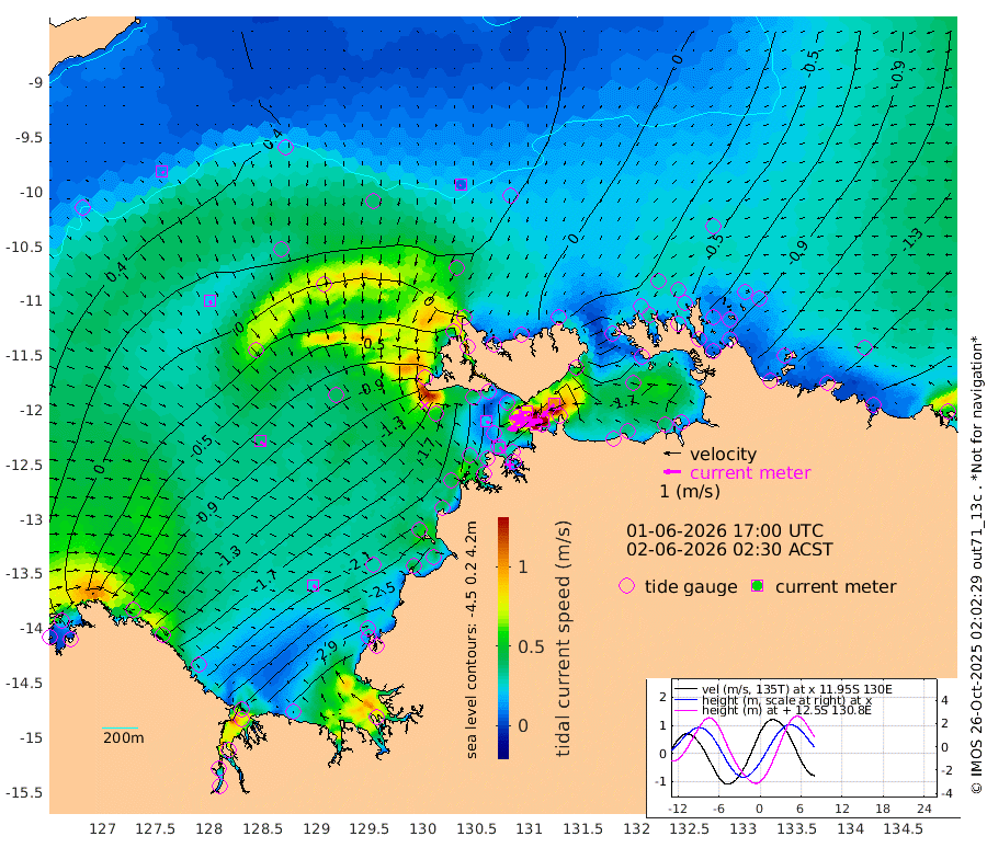 165cm/s -101T +4cm/s rms + 6cm/s 51T. Darwin_C1 52m 157cm/s -92T +4cm/s rms + 7cm/s -161T. Darwin_CW1 22m 63cm/s -105T +4cm/s rms + 8cm/s 61T. Darwin_CW2 34m 103cm/s -137T +3cm/s rms + 9cm/s 98T. Darwin_CW3 22m 135cm/s -90T +5cm/s rms + 7cm/s 88T. Darwin_C3 56m 83cm/s -116T +2cm/s rms + 9cm/s -126T. Darwin_CTbW 22m 7cm/s -157T +9cm/s rms + 2cm/s -110T. NWSLYN 196m 21cm/s 115T +1cm/s rms + 1cm/s -47T. DARBGF 30m 12cm/s 132T +7cm/s rms + 2cm/s -137T. ITFTIS 464m 22cm/s 156T +9cm/s rms + 1cm/s 74T. ITFMHB 146m 24cm/s 125T +4cm/s rms + 1cm/s -134T. ITFJBG 61m 38cm/s 128T +6cm/s rms + 4cm/s 121T. ITFFTB 108m 33cm/s 138T +4cm/s rms + 3cm/s 80T. NRSDAR 19m -13cm Carronade Island -12cm Guy Point -20cm Napier Broome Bay -116cm Lesueur Island -192cm Reveley Island -83cm Rocky Island -292cm Cape Domett -268cm Lacrosse Island -322cm Adolphus Island -312cm Pender Point -319cm Wyndham -27cm The Boxers -49cm Unnamed Shoal 31cm Loxton Shoal -298cm Pelican Island 2cm Calder Shoal 26cm Evans Shoal -417cm Quoin Island -261cm Port Keats -254cm Jones Point -409cm Catfish Island -169cm Cape Scott Offshore -114cm Cape Ford -184cm Anson Bay 15cm Goodrich Bank -159cm Peron Island North -131cm Point Jenny -129cm Native Point -155cm Fish Reef -163cm Tapa Bay -56cm Point Fawcett (Offshore) -183cm Burge Point -137cm Munkunuwa -104cm Beagle A -184cm Parsons Bank -169cm Fenton Patches 11cm Lynedoch Bank -191cm Hancox Shoal Area -192cm Nightcliff -225cm Darwin -194cm Charles Point Patches -199cm Glyde Point -204cm Chambers Bay -221cm Point Stuart -192cm Cape Hotham -181cm Christine Reef -240cm West Alligator Head -250cm East Field Island -181cm Two Hills Bay -78cm Newby Shoal -176cm Camp Point -167cm Medina Inlet South -36cm South Barlow Point -10cm St. Asaph Bay 15cm Cape Van Dieman 1cm Snake Bay 3cm Cache Point 46cm Echo Shoal -21cm Point Jahleel (Off) -85cm Cape Don -34cm Port Essington -27cm Smith Point - West -29cm NW Peacock Island -17cm North Of Jones Shoal -8cm Peacock Island -67cm Point David -33cm D'urville Point -35cm Money Shoal -69cm Copeland Island -93cm Cape Cockburn -67cm One Tree Point -94cm Hogmany Shoal -72cm New Year Island - West -75cm Grant Island -101cm Aurari Bay -123cm Cuthbert Point -99cm North Goulburn Island -149cm Paxie Shoal -152cm Entrance Island -186cm Yabooma Island