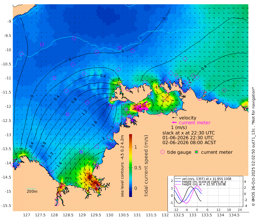 212cm/s 78T +4cm/s rms + 6cm/s 51T. Darwin_C1 52m 177cm/s 93T +4cm/s rms + 7cm/s -161T. Darwin_CW1 22m 120cm/s 72T +4cm/s rms + 8cm/s 61T. Darwin_CW2 34m 115cm/s 46T +3cm/s rms + 9cm/s 98T. Darwin_CW3 22m 192cm/s 89T +5cm/s rms + 7cm/s 88T. Darwin_C3 56m 107cm/s 66T +2cm/s rms + 9cm/s -126T. Darwin_CTbW 22m 5cm/s 0T +9cm/s rms + 2cm/s -110T. NWSLYN 196m 31cm/s 74T +1cm/s rms + 1cm/s -47T. DARBGF 30m 4cm/s -105T +7cm/s rms + 2cm/s -137T. ITFTIS 464m 11cm/s -146T +9cm/s rms + 1cm/s 74T. ITFMHB 146m 15cm/s -145T +4cm/s rms + 1cm/s -134T. ITFJBG 61m 10cm/s -119T +6cm/s rms + 4cm/s 121T. ITFFTB 108m 19cm/s 93T +4cm/s rms + 3cm/s 80T. NRSDAR 19m -16cm Carronade Island -12cm Guy Point -17cm Napier Broome Bay 89cm Lesueur Island 189cm Reveley Island 116cm Rocky Island 264cm Cape Domett 245cm Lacrosse Island 271cm Adolphus Island 206cm Pender Point 186cm Wyndham 51cm The Boxers 47cm Unnamed Shoal -7cm Loxton Shoal 286cm Pelican Island 37cm Calder Shoal 3cm Evans Shoal 327cm Quoin Island 274cm Port Keats 258cm Jones Point 291cm Catfish Island 212cm Cape Scott Offshore 199cm Cape Ford 230cm Anson Bay 13cm Goodrich Bank 202cm Peron Island North 196cm Point Jenny 194cm Native Point 210cm Fish Reef 223cm Tapa Bay 112cm Point Fawcett (Offshore) 230cm Burge Point 207cm Munkunuwa 171cm Beagle A 223cm Parsons Bank 225cm Fenton Patches 2cm Lynedoch Bank 226cm Hancox Shoal Area 243cm Nightcliff 254cm Darwin 234cm Charles Point Patches 186cm Glyde Point 151cm Chambers Bay 142cm Point Stuart 157cm Cape Hotham 140cm Christine Reef 154cm West Alligator Head 141cm East Field Island 130cm Two Hills Bay 117cm Newby Shoal 127cm Camp Point 219cm Medina Inlet South 88cm South Barlow Point 64cm St. Asaph Bay 15cm Cape Van Dieman 20cm Snake Bay 21cm Cache Point -22cm Echo Shoal 37cm Point Jahleel (Off) 77cm Cape Don 35cm Port Essington 37cm Smith Point - West 28cm NW Peacock Island 21cm North Of Jones Shoal 8cm Peacock Island 29cm Point David 32cm D'urville Point 16cm Money Shoal 30cm Copeland Island 43cm Cape Cockburn 34cm One Tree Point 41cm Hogmany Shoal 33cm New Year Island - West 35cm Grant Island 46cm Aurari Bay 55cm Cuthbert Point 44cm North Goulburn Island 60cm Paxie Shoal 62cm Entrance Island 65cm Yabooma Island