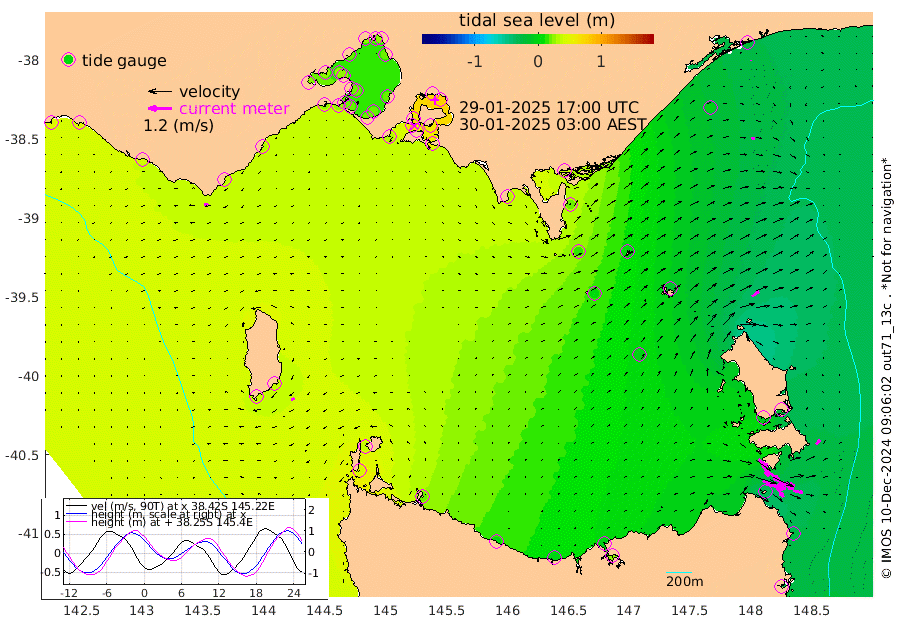 83cm/s 113T +9cm/s rms + 16cm/s 128T. CWTb1 63m 74cm/s 106T +8cm/s rms + 14cm/s 130T. C1A1 56m 101cm/s 103T +8cm/s rms + 12cm/s 12T. C1A3 27m 65cm/s 127T +0cm/s rms + 0cm/s 0T. CW1 32m 106cm/s 129T +11cm/s rms + 9cm/s 121T. CW2A1 44m 66cm/s 144T +7cm/s rms + 12cm/s 156T. CW2A2 44m 84cm/s 151T +7cm/s rms + 4cm/s 115T. CW3 33m 115cm/s 111T +9cm/s rms + 6cm/s 84T. CW4A1 30m 48cm/s 100T +5cm/s rms + 7cm/s 87T. CW4A2 36m 29cm/s 44T +9cm/s rms + 16cm/s 35T. CW6A1 37m 24cm/s 48T +6cm/s rms + 4cm/s 94T. CW6A2 31m 43cm/s 55T +4cm/s rms + 6cm/s 137T. BASS-CS91 47m 16cm/s 93T +11cm/s rms + 3cm/s -58T. BASS-CS91 70m 3cm/s 180T +10cm/s rms + 1cm/s 137T. BASS-CS91 47m 19cm/s -117T +10cm/s rms + 3cm/s 42T. BASS-CS91 53m 21cm/s -109T +8cm/s rms + 2cm/s 81T. BASS-CS91 64m 6cm/s 12T +6cm/s rms + 5cm/s 151T. BASS-UN91 115m 8cm/s -64T +4cm/s rms + 3cm/s 111T. Tas91 UNSW Mooring #1 65m 95m -19cm Lakes Entrance (Outer) -5cm Barracouta Platform 1cm Hogan Island 38cm Port Welshpool Pier 22cm Rabbit Island 12cm East Moncoeur Island 4cm Curtis Island 28cm Waratah Bay 57cm San Remo 59cm Elizabeth Island 78cm Bouchier Channel 77cm Tooradin 54cm Cowes Jetty 58cm Western Port (Stony Point) 76cm Western Port (Sandy Point) 31cm Flinders Jetty 21cm Mornington 22cm Sandringham 19cm Rosebud Jetty 20cm Hovell Pile 19cm South Channel 25cm Point Lonsdale 20cm Queenscliff 20cm West Channel Pile 25cm Barwon Heads 21cm St Leonards 24cm Point Richards (Corio Bay) 24cm Point Richards Channel 24cm Geelong 18cm Werribee 23cm Altona 25cm Wilson Spit 22cm Melbourne (Williamstown) 23cm St Kilda 34cm Lorne 34cm Apollo Bay -14cm Garden Cove -5cm Bass Pyramid 38cm Seal Bay 37cm King Island (Grassy) 40cm Stack Island 36cm Three Hummock Island 17cm Stanley 1cm Burnie -4cm Devonport -3cm Low Head 24cm Bell Bay -11cm Big River Cove -17cm Lady Barron Harbour -32cm Swan Island -27cm Eddystone Point -25cm St Helens 40cm Port Campbell 47cm Warrnambool 47cm Port Fairy