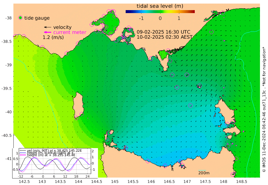 16cm/s 121T +9cm/s rms + 16cm/s 128T. CWTb1 63m 10cm/s 113T +8cm/s rms + 14cm/s 130T. C1A1 56m 14cm/s -84T +8cm/s rms + 12cm/s 12T. C1A3 27m 11cm/s 145T +0cm/s rms + 0cm/s 0T. CW1 32m 9cm/s 153T +11cm/s rms + 9cm/s 121T. CW2A1 44m 6cm/s 162T +7cm/s rms + 12cm/s 156T. CW2A2 44m 9cm/s 158T +7cm/s rms + 4cm/s 115T. CW3 33m 6cm/s 121T +9cm/s rms + 6cm/s 84T. CW4A1 30m 11cm/s 17T +5cm/s rms + 7cm/s 87T. CW4A2 36m 25cm/s 26T +9cm/s rms + 16cm/s 35T. CW6A1 37m 17cm/s 44T +6cm/s rms + 4cm/s 94T. CW6A2 31m 15cm/s -12T +4cm/s rms + 6cm/s 137T. BASS-CS91 47m 20cm/s 60T +11cm/s rms + 3cm/s -58T. BASS-CS91 70m 10cm/s 79T +10cm/s rms + 1cm/s 137T. BASS-CS91 47m 7cm/s 49T +10cm/s rms + 3cm/s 42T. BASS-CS91 53m 2cm/s -157T +8cm/s rms + 2cm/s 81T. BASS-CS91 64m 5cm/s -1T +6cm/s rms + 5cm/s 151T. BASS-UN91 115m 6cm/s -45T +4cm/s rms + 3cm/s 111T. Tas91 UNSW Mooring #1 65m 95m 0cm Lakes Entrance (Outer) -2cm Barracouta Platform -36cm Hogan Island -29cm Port Welshpool Pier -31cm Rabbit Island -40cm East Moncoeur Island -51cm Curtis Island -46cm Waratah Bay -33cm San Remo -27cm Elizabeth Island -27cm Bouchier Channel -24cm Tooradin -29cm Cowes Jetty -30cm Western Port (Stony Point) -23cm Western Port (Sandy Point) -29cm Flinders Jetty 13cm Mornington 12cm Sandringham 13cm Rosebud Jetty 12cm Hovell Pile 3cm South Channel -8cm Point Lonsdale 1cm Queenscliff 12cm West Channel Pile -18cm Barwon Heads 12cm St Leonards 13cm Point Richards (Corio Bay) 12cm Point Richards Channel 14cm Geelong 10cm Werribee 12cm Altona 13cm Wilson Spit 13cm Melbourne (Williamstown) 13cm St Kilda -8cm Lorne 5cm Apollo Bay -43cm Garden Cove -60cm Bass Pyramid 19cm Seal Bay 8cm King Island (Grassy) -46cm Stack Island -35cm Three Hummock Island -79cm Stanley -85cm Burnie -88cm Devonport -85cm Low Head -78cm Bell Bay -71cm Big River Cove -36cm Lady Barron Harbour -7cm Swan Island 16cm Eddystone Point -15cm St Helens 29cm Port Campbell 36cm Warrnambool 36cm Port Fairy