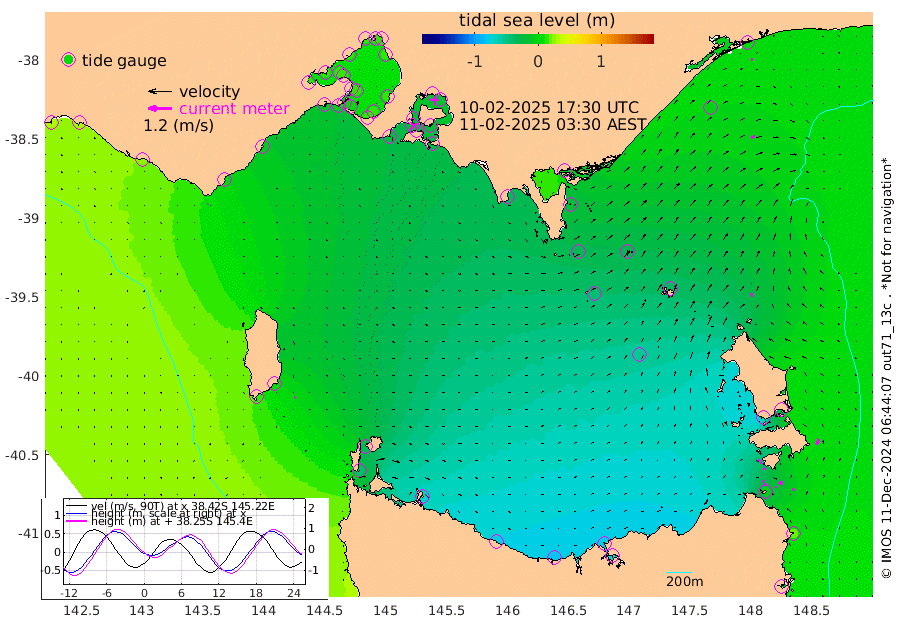 18cm/s 120T +9cm/s rms + 16cm/s 128T. CWTb1 63m 11cm/s 112T +8cm/s rms + 14cm/s 130T. C1A1 56m 12cm/s -86T +8cm/s rms + 12cm/s 12T. C1A3 27m 12cm/s 143T +0cm/s rms + 0cm/s 0T. CW1 32m 11cm/s 149T +11cm/s rms + 9cm/s 121T. CW2A1 44m 7cm/s 163T +7cm/s rms + 12cm/s 156T. CW2A2 44m 10cm/s 157T +7cm/s rms + 4cm/s 115T. CW3 33m 8cm/s 119T +9cm/s rms + 6cm/s 84T. CW4A1 30m 11cm/s 21T +5cm/s rms + 7cm/s 87T. CW4A2 36m 26cm/s 25T +9cm/s rms + 16cm/s 35T. CW6A1 37m 20cm/s 45T +6cm/s rms + 4cm/s 94T. CW6A2 31m 15cm/s -6T +4cm/s rms + 6cm/s 137T. BASS-CS91 47m 20cm/s 61T +11cm/s rms + 3cm/s -58T. BASS-CS91 70m 10cm/s 78T +10cm/s rms + 1cm/s 137T. BASS-CS91 47m 7cm/s 48T +10cm/s rms + 3cm/s 42T. BASS-CS91 53m 3cm/s -134T +8cm/s rms + 2cm/s 81T. BASS-CS91 64m 6cm/s -7T +6cm/s rms + 5cm/s 151T. BASS-UN91 115m 7cm/s -45T +4cm/s rms + 3cm/s 111T. Tas91 UNSW Mooring #1 65m 95m 3cm Lakes Entrance (Outer) -1cm Barracouta Platform -30cm Hogan Island -21cm Port Welshpool Pier -22cm Rabbit Island -32cm East Moncoeur Island -43cm Curtis Island -39cm Waratah Bay -25cm San Remo -18cm Elizabeth Island -16cm Bouchier Channel -14cm Tooradin -20cm Cowes Jetty -21cm Western Port (Stony Point) -15cm Western Port (Sandy Point) -24cm Flinders Jetty 16cm Mornington 15cm Sandringham 14cm Rosebud Jetty 14cm Hovell Pile 5cm South Channel -5cm Point Lonsdale 3cm Queenscliff 14cm West Channel Pile -16cm Barwon Heads 14cm St Leonards 15cm Point Richards (Corio Bay) 15cm Point Richards Channel 16cm Geelong 12cm Werribee 15cm Altona 15cm Wilson Spit 15cm Melbourne (Williamstown) 15cm St Kilda -7cm Lorne 4cm Apollo Bay -37cm Garden Cove -52cm Bass Pyramid 16cm Seal Bay 4cm King Island (Grassy) -43cm Stack Island -33cm Three Hummock Island -73cm Stanley -78cm Burnie -80cm Devonport -78cm Low Head -71cm Bell Bay -64cm Big River Cove -32cm Lady Barron Harbour -2cm Swan Island 20cm Eddystone Point -15cm St Helens 26cm Port Campbell 31cm Warrnambool 31cm Port Fairy