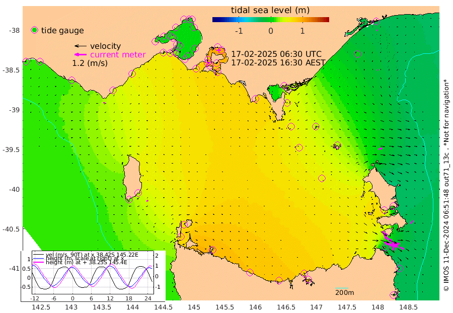 64cm/s 109T +9cm/s rms + 16cm/s 128T. CWTb1 63m 68cm/s 102T +8cm/s rms + 14cm/s 130T. C1A1 56m 124cm/s 104T +8cm/s rms + 12cm/s 12T. C1A3 27m 66cm/s 128T +0cm/s rms + 0cm/s 0T. CW1 32m 105cm/s 129T +11cm/s rms + 9cm/s 121T. CW2A1 44m 68cm/s 145T +7cm/s rms + 12cm/s 156T. CW2A2 44m 83cm/s 152T +7cm/s rms + 4cm/s 115T. CW3 33m 116cm/s 109T +9cm/s rms + 6cm/s 84T. CW4A1 30m 53cm/s 113T +5cm/s rms + 7cm/s 87T. CW4A2 36m 5cm/s 70T +9cm/s rms + 16cm/s 35T. CW6A1 37m 35cm/s 37T +6cm/s rms + 4cm/s 94T. CW6A2 31m 38cm/s 77T +4cm/s rms + 6cm/s 137T. BASS-CS91 47m 9cm/s -167T +11cm/s rms + 3cm/s -58T. BASS-CS91 70m 9cm/s -112T +10cm/s rms + 1cm/s 137T. BASS-CS91 47m 18cm/s -116T +10cm/s rms + 3cm/s 42T. BASS-CS91 53m 14cm/s -101T +8cm/s rms + 2cm/s 81T. BASS-CS91 64m 3cm/s 21T +6cm/s rms + 5cm/s 151T. BASS-UN91 115m 1cm/s -76T +4cm/s rms + 3cm/s 111T. Tas91 UNSW Mooring #1 65m 95m -23cm Lakes Entrance (Outer) -4cm Barracouta Platform 38cm Hogan Island 53cm Port Welshpool Pier 53cm Rabbit Island 55cm East Moncoeur Island 53cm Curtis Island 77cm Waratah Bay 91cm San Remo 85cm Elizabeth Island 99cm Bouchier Channel 95cm Tooradin 88cm Cowes Jetty 89cm Western Port (Stony Point) 94cm Western Port (Sandy Point) 67cm Flinders Jetty 7cm Mornington 10cm Sandringham 7cm Rosebud Jetty 9cm Hovell Pile 21cm South Channel 38cm Point Lonsdale 24cm Queenscliff 10cm West Channel Pile 44cm Barwon Heads 10cm St Leonards 12cm Point Richards (Corio Bay) 11cm Point Richards Channel 12cm Geelong 12cm Werribee 11cm Altona 10cm Wilson Spit 10cm Melbourne (Williamstown) 11cm St Kilda 50cm Lorne 36cm Apollo Bay 28cm Garden Cove 51cm Bass Pyramid 20cm Seal Bay 30cm King Island (Grassy) 80cm Stack Island 63cm Three Hummock Island 89cm Stanley 81cm Burnie 78cm Devonport 77cm Low Head 91cm Bell Bay 54cm Big River Cove 16cm Lady Barron Harbour -22cm Swan Island -35cm Eddystone Point -12cm St Helens 17cm Port Campbell 15cm Warrnambool 16cm Port Fairy