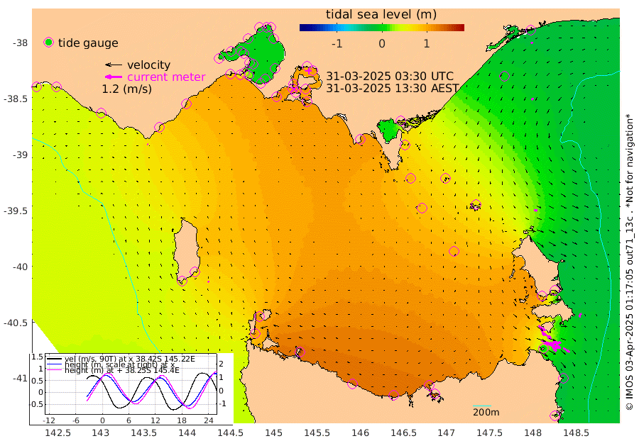 43cm/s 106T +9cm/s rms + 16cm/s 128T. CWTb1 63m 51cm/s 102T +8cm/s rms + 14cm/s 130T. C1A1 56m 123cm/s 105T +8cm/s rms + 12cm/s 12T. C1A3 27m 61cm/s 126T +0cm/s rms + 0cm/s 0T. CW1 32m 85cm/s 129T +11cm/s rms + 9cm/s 121T. CW2A1 44m 62cm/s 140T +7cm/s rms + 12cm/s 156T. CW2A2 44m 67cm/s 152T +7cm/s rms + 4cm/s 115T. CW3 33m 97cm/s 106T +9cm/s rms + 6cm/s 84T. CW4A1 30m 54cm/s 123T +5cm/s rms + 7cm/s 87T. CW4A2 36m 17cm/s 173T +9cm/s rms + 16cm/s 35T. CW6A1 37m 16cm/s 62T +6cm/s rms + 4cm/s 94T. CW6A2 31m 24cm/s 94T +4cm/s rms + 6cm/s 137T. BASS-CS91 47m 18cm/s -139T +11cm/s rms + 3cm/s -58T. BASS-CS91 70m 15cm/s -115T +10cm/s rms + 1cm/s 137T. BASS-CS91 47m 8cm/s -40T +10cm/s rms + 3cm/s 42T. BASS-CS91 53m 5cm/s -51T +8cm/s rms + 2cm/s 81T. BASS-CS91 64m 13cm/s 26T +6cm/s rms + 5cm/s 151T. BASS-UN91 115m 7cm/s -16T +4cm/s rms + 3cm/s 111T. Tas91 UNSW Mooring #1 65m 95m -14cm Lakes Entrance (Outer) 2cm Barracouta Platform 72cm Hogan Island 69cm Port Welshpool Pier 76cm Rabbit Island 91cm East Moncoeur Island 86cm Curtis Island 115cm Waratah Bay 119cm San Remo 107cm Elizabeth Island 105cm Bouchier Channel 90cm Tooradin 112cm Cowes Jetty 111cm Western Port (Stony Point) 103cm Western Port (Sandy Point) 109cm Flinders Jetty 1cm Mornington 2cm Sandringham 3cm Rosebud Jetty 2cm Hovell Pile 28cm South Channel 64cm Point Lonsdale 37cm Queenscliff 4cm West Channel Pile 80cm Barwon Heads 4cm St Leonards 3cm Point Richards (Corio Bay) 3cm Point Richards Channel 1cm Geelong -2cm Werribee 3cm Altona 2cm Wilson Spit 2cm Melbourne (Williamstown) 2cm St Kilda 92cm Lorne 75cm Apollo Bay 63cm Garden Cove 90cm Bass Pyramid 53cm Seal Bay 67cm King Island (Grassy) 106cm Stack Island 102cm Three Hummock Island 135cm Stanley 133cm Burnie 132cm Devonport 128cm Low Head 130cm Bell Bay 99cm Big River Cove 44cm Lady Barron Harbour 6cm Swan Island -21cm Eddystone Point 13cm St Helens 34cm Port Campbell 45cm Warrnambool 44cm Port Fairy