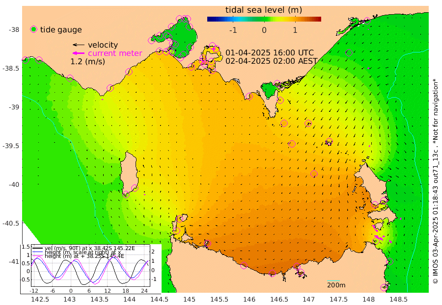 8cm/s 78T +9cm/s rms + 16cm/s 128T. CWTb1 63m 16cm/s 95T +8cm/s rms + 14cm/s 130T. C1A1 56m 58cm/s 105T +8cm/s rms + 12cm/s 12T. C1A3 27m 25cm/s 122T +0cm/s rms + 0cm/s 0T. CW1 32m 33cm/s 128T +11cm/s rms + 9cm/s 121T. CW2A1 44m 27cm/s 134T +7cm/s rms + 12cm/s 156T. CW2A2 44m 26cm/s 150T +7cm/s rms + 4cm/s 115T. CW3 33m 38cm/s 101T +9cm/s rms + 6cm/s 84T. CW4A1 30m 29cm/s 137T +5cm/s rms + 7cm/s 87T. CW4A2 36m 18cm/s -170T +9cm/s rms + 16cm/s 35T. CW6A1 37m 16cm/s 177T +6cm/s rms + 4cm/s 94T. CW6A2 31m 12cm/s 168T +4cm/s rms + 6cm/s 137T. BASS-CS91 47m 14cm/s -130T +11cm/s rms + 3cm/s -58T. BASS-CS91 70m 6cm/s -111T +10cm/s rms + 1cm/s 137T. BASS-CS91 47m 9cm/s -6T +10cm/s rms + 3cm/s 42T. BASS-CS91 53m 5cm/s -8T +8cm/s rms + 2cm/s 81T. BASS-CS91 64m 24cm/s 4T +6cm/s rms + 5cm/s 151T. BASS-UN91 115m 13cm/s -21T +4cm/s rms + 3cm/s 111T. Tas91 UNSW Mooring #1 65m 95m 1cm Lakes Entrance (Outer) 5cm Barracouta Platform 79cm Hogan Island 61cm Port Welshpool Pier 76cm Rabbit Island 93cm East Moncoeur Island 94cm Curtis Island 111cm Waratah Bay 97cm San Remo 83cm Elizabeth Island 76cm Bouchier Channel 59cm Tooradin 93cm Cowes Jetty 91cm Western Port (Stony Point) 73cm Western Port (Sandy Point) 97cm Flinders Jetty 2cm Mornington 0cm Sandringham 3cm Rosebud Jetty 3cm Hovell Pile 25cm South Channel 57cm Point Lonsdale 35cm Queenscliff 4cm West Channel Pile 71cm Barwon Heads 4cm St Leonards 2cm Point Richards (Corio Bay) 3cm Point Richards Channel -1cm Geelong 1cm Werribee 1cm Altona 2cm Wilson Spit 1cm Melbourne (Williamstown) 2cm St Kilda 76cm Lorne 57cm Apollo Bay 78cm Garden Cove 102cm Bass Pyramid 24cm Seal Bay 42cm King Island (Grassy) 71cm Stack Island 87cm Three Hummock Island 134cm Stanley 140cm Burnie 141cm Devonport 137cm Low Head 126cm Bell Bay 109cm Big River Cove 53cm Lady Barron Harbour 30cm Swan Island 6cm Eddystone Point 34cm St Helens 18cm Port Campbell 12cm Warrnambool 11cm Port Fairy