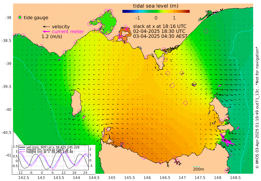 86cm/s 109T +9cm/s rms + 16cm/s 128T. CWTb1 63m 89cm/s 103T +8cm/s rms + 14cm/s 130T. C1A1 56m 174cm/s 105T +8cm/s rms + 12cm/s 12T. C1A3 27m 95cm/s 127T +0cm/s rms + 0cm/s 0T. CW1 32m 137cm/s 130T +11cm/s rms + 9cm/s 121T. CW2A1 44m 101cm/s 143T +7cm/s rms + 12cm/s 156T. CW2A2 44m 106cm/s 152T +7cm/s rms + 4cm/s 115T. CW3 33m 149cm/s 109T +9cm/s rms + 6cm/s 84T. CW4A1 30m 79cm/s 109T +5cm/s rms + 7cm/s 87T. CW4A2 36m 24cm/s 28T +9cm/s rms + 16cm/s 35T. CW6A1 37m 55cm/s 46T +6cm/s rms + 4cm/s 94T. CW6A2 31m 47cm/s 73T +4cm/s rms + 6cm/s 137T. BASS-CS91 47m 13cm/s 110T +11cm/s rms + 3cm/s -58T. BASS-CS91 70m 3cm/s 85T +10cm/s rms + 1cm/s 137T. BASS-CS91 47m 61cm/s -130T +10cm/s rms + 3cm/s 42T. BASS-CS91 53m 40cm/s -108T +8cm/s rms + 2cm/s 81T. BASS-CS91 64m 22cm/s -42T +6cm/s rms + 5cm/s 151T. BASS-UN91 115m 14cm/s -107T +4cm/s rms + 3cm/s 111T. Tas91 UNSW Mooring #1 65m 95m -19cm Lakes Entrance (Outer) -7cm Barracouta Platform 48cm Hogan Island 96cm Port Welshpool Pier 66cm Rabbit Island 67cm East Moncoeur Island 62cm Curtis Island 82cm Waratah Bay 108cm San Remo 111cm Elizabeth Island 129cm Bouchier Channel 126cm Tooradin 98cm Cowes Jetty 102cm Western Port (Stony Point) 129cm Western Port (Sandy Point) 59cm Flinders Jetty 25cm Mornington 26cm Sandringham 23cm Rosebud Jetty 23cm Hovell Pile 25cm South Channel 31cm Point Lonsdale 25cm Queenscliff 25cm West Channel Pile 35cm Barwon Heads 26cm St Leonards 28cm Point Richards (Corio Bay) 29cm Point Richards Channel 28cm Geelong 23cm Werribee 27cm Altona 30cm Wilson Spit 26cm Melbourne (Williamstown) 28cm St Kilda 27cm Lorne 10cm Apollo Bay 33cm Garden Cove 68cm Bass Pyramid -5cm Seal Bay 7cm King Island (Grassy) 96cm Stack Island 88cm Three Hummock Island 119cm Stanley 108cm Burnie 104cm Devonport 105cm Low Head 133cm Bell Bay 74cm Big River Cove 21cm Lady Barron Harbour -20cm Swan Island -30cm Eddystone Point 2cm St Helens -19cm Port Campbell -20cm Warrnambool -20cm Port Fairy