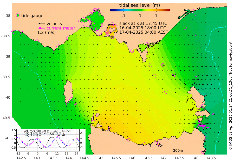 61cm/s 108T +9cm/s rms + 16cm/s 128T. CWTb1 63m 65cm/s 102T +8cm/s rms + 14cm/s 130T. C1A1 56m 119cm/s 105T +8cm/s rms + 12cm/s 12T. C1A3 27m 68cm/s 129T +0cm/s rms + 0cm/s 0T. CW1 32m 98cm/s 129T +11cm/s rms + 9cm/s 121T. CW2A1 44m 70cm/s 143T +7cm/s rms + 12cm/s 156T. CW2A2 44m 78cm/s 152T +7cm/s rms + 4cm/s 115T. CW3 33m 110cm/s 110T +9cm/s rms + 6cm/s 84T. CW4A1 30m 55cm/s 108T +5cm/s rms + 7cm/s 87T. CW4A2 36m 24cm/s 23T +9cm/s rms + 16cm/s 35T. CW6A1 37m 46cm/s 43T +6cm/s rms + 4cm/s 94T. CW6A2 31m 33cm/s 74T +4cm/s rms + 6cm/s 137T. BASS-CS91 47m 7cm/s 108T +11cm/s rms + 3cm/s -58T. BASS-CS91 70m 3cm/s 79T +10cm/s rms + 1cm/s 137T. BASS-CS91 47m 47cm/s -131T +10cm/s rms + 3cm/s 42T. BASS-CS91 53m 28cm/s -108T +8cm/s rms + 2cm/s 81T. BASS-CS91 64m 16cm/s -46T +6cm/s rms + 5cm/s 151T. BASS-UN91 115m 11cm/s -108T +4cm/s rms + 3cm/s 111T. Tas91 UNSW Mooring #1 65m 95m -20cm Lakes Entrance (Outer) -5cm Barracouta Platform 20cm Hogan Island 55cm Port Welshpool Pier 37cm Rabbit Island 33cm East Moncoeur Island 36cm Curtis Island 53cm Waratah Bay 70cm San Remo 72cm Elizabeth Island 89cm Bouchier Channel 89cm Tooradin 66cm Cowes Jetty 68cm Western Port (Stony Point) 86cm Western Port (Sandy Point) 36cm Flinders Jetty 17cm Mornington 19cm Sandringham 15cm Rosebud Jetty 16cm Hovell Pile 16cm South Channel 19cm Point Lonsdale 16cm Queenscliff 17cm West Channel Pile 21cm Barwon Heads 18cm St Leonards 20cm Point Richards (Corio Bay) 20cm Point Richards Channel 20cm Geelong 17cm Werribee 19cm Altona 21cm Wilson Spit 18cm Melbourne (Williamstown) 19cm St Kilda 16cm Lorne 2cm Apollo Bay 11cm Garden Cove 36cm Bass Pyramid -9cm Seal Bay 1cm King Island (Grassy) 56cm Stack Island 52cm Three Hummock Island 74cm Stanley 63cm Burnie 60cm Devonport 60cm Low Head 83cm Bell Bay 36cm Big River Cove 3cm Lady Barron Harbour -26cm Swan Island -34cm Eddystone Point -7cm St Helens -11cm Port Campbell -15cm Warrnambool -15cm Port Fairy