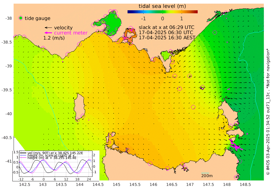 73cm/s 110T +9cm/s rms + 16cm/s 128T. CWTb1 63m 76cm/s 103T +8cm/s rms + 14cm/s 130T. C1A1 56m 126cm/s 104T +8cm/s rms + 12cm/s 12T. C1A3 27m 70cm/s 127T +0cm/s rms + 0cm/s 0T. CW1 32m 115cm/s 129T +11cm/s rms + 9cm/s 121T. CW2A1 44m 73cm/s 144T +7cm/s rms + 12cm/s 156T. CW2A2 44m 92cm/s 152T +7cm/s rms + 4cm/s 115T. CW3 33m 128cm/s 110T +9cm/s rms + 6cm/s 84T. CW4A1 30m 56cm/s 115T +5cm/s rms + 7cm/s 87T. CW4A2 36m 11cm/s 118T +9cm/s rms + 16cm/s 35T. CW6A1 37m 22cm/s 40T +6cm/s rms + 4cm/s 94T. CW6A2 31m 42cm/s 70T +4cm/s rms + 6cm/s 137T. BASS-CS91 47m 10cm/s 178T +11cm/s rms + 3cm/s -58T. BASS-CS91 70m 13cm/s -118T +10cm/s rms + 1cm/s 137T. BASS-CS91 47m 8cm/s -48T +10cm/s rms + 3cm/s 42T. BASS-CS91 53m 12cm/s -95T +8cm/s rms + 2cm/s 81T. BASS-CS91 64m 8cm/s 74T +6cm/s rms + 5cm/s 151T. BASS-UN91 115m 5cm/s 5T +4cm/s rms + 3cm/s 111T. Tas91 UNSW Mooring #1 65m 95m -11cm Lakes Entrance (Outer) 2cm Barracouta Platform 49cm Hogan Island 79cm Port Welshpool Pier 74cm Rabbit Island 67cm East Moncoeur Island 63cm Curtis Island 90cm Waratah Bay 115cm San Remo 111cm Elizabeth Island 130cm Bouchier Channel 126cm Tooradin 109cm Cowes Jetty 112cm Western Port (Stony Point) 125cm Western Port (Sandy Point) 84cm Flinders Jetty 13cm Mornington 17cm Sandringham 13cm Rosebud Jetty 15cm Hovell Pile 27cm South Channel 49cm Point Lonsdale 31cm Queenscliff 16cm West Channel Pile 57cm Barwon Heads 16cm St Leonards 19cm Point Richards (Corio Bay) 18cm Point Richards Channel 19cm Geelong 15cm Werribee 18cm Altona 18cm Wilson Spit 17cm Melbourne (Williamstown) 18cm St Kilda 64cm Lorne 54cm Apollo Bay 34cm Garden Cove 61cm Bass Pyramid 44cm Seal Bay 51cm King Island (Grassy) 87cm Stack Island 72cm Three Hummock Island 91cm Stanley 82cm Burnie 80cm Devonport 79cm Low Head 97cm Bell Bay 58cm Big River Cove 23cm Lady Barron Harbour -11cm Swan Island -28cm Eddystone Point -13cm St Helens 36cm Port Campbell 36cm Warrnambool 33cm Port Fairy