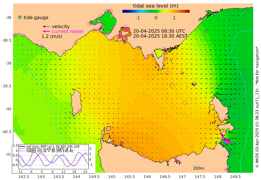 75cm/s 109T +9cm/s rms + 16cm/s 128T. CWTb1 63m 77cm/s 103T +8cm/s rms + 14cm/s 130T. C1A1 56m 142cm/s 104T +8cm/s rms + 12cm/s 12T. C1A3 27m 73cm/s 127T +0cm/s rms + 0cm/s 0T. CW1 32m 117cm/s 129T +11cm/s rms + 9cm/s 121T. CW2A1 44m 75cm/s 142T +7cm/s rms + 12cm/s 156T. CW2A2 44m 94cm/s 152T +7cm/s rms + 4cm/s 115T. CW3 33m 131cm/s 110T +9cm/s rms + 6cm/s 84T. CW4A1 30m 58cm/s 118T +5cm/s rms + 7cm/s 87T. CW4A2 36m 17cm/s 127T +9cm/s rms + 16cm/s 35T. CW6A1 37m 12cm/s 45T +6cm/s rms + 4cm/s 94T. CW6A2 31m 45cm/s 68T +4cm/s rms + 6cm/s 137T. BASS-CS91 47m 12cm/s 165T +11cm/s rms + 3cm/s -58T. BASS-CS91 70m 14cm/s -123T +10cm/s rms + 1cm/s 137T. BASS-CS91 47m 10cm/s -72T +10cm/s rms + 3cm/s 42T. BASS-CS91 53m 20cm/s -102T +8cm/s rms + 2cm/s 81T. BASS-CS91 64m 10cm/s 65T +6cm/s rms + 5cm/s 151T. BASS-UN91 115m 9cm/s -10T +4cm/s rms + 3cm/s 111T. Tas91 UNSW Mooring #1 65m 95m -1cm Lakes Entrance (Outer) 7cm Barracouta Platform 56cm Hogan Island 99cm Port Welshpool Pier 80cm Rabbit Island 69cm East Moncoeur Island 68cm Curtis Island 85cm Waratah Bay 109cm San Remo 111cm Elizabeth Island 131cm Bouchier Channel 128cm Tooradin 100cm Cowes Jetty 107cm Western Port (Stony Point) 128cm Western Port (Sandy Point) 71cm Flinders Jetty 15cm Mornington 18cm Sandringham 14cm Rosebud Jetty 15cm Hovell Pile 23cm South Channel 40cm Point Lonsdale 26cm Queenscliff 16cm West Channel Pile 48cm Barwon Heads 17cm St Leonards 19cm Point Richards (Corio Bay) 19cm Point Richards Channel 19cm Geelong 12cm Werribee 19cm Altona 20cm Wilson Spit 17cm Melbourne (Williamstown) 18cm St Kilda 50cm Lorne 40cm Apollo Bay 40cm Garden Cove 71cm Bass Pyramid 38cm Seal Bay 40cm King Island (Grassy) 89cm Stack Island 77cm Three Hummock Island 100cm Stanley 89cm Burnie 87cm Devonport 88cm Low Head 110cm Bell Bay 71cm Big River Cove 34cm Lady Barron Harbour 7cm Swan Island -14cm Eddystone Point -3cm St Helens 15cm Port Campbell 24cm Warrnambool 22cm Port Fairy