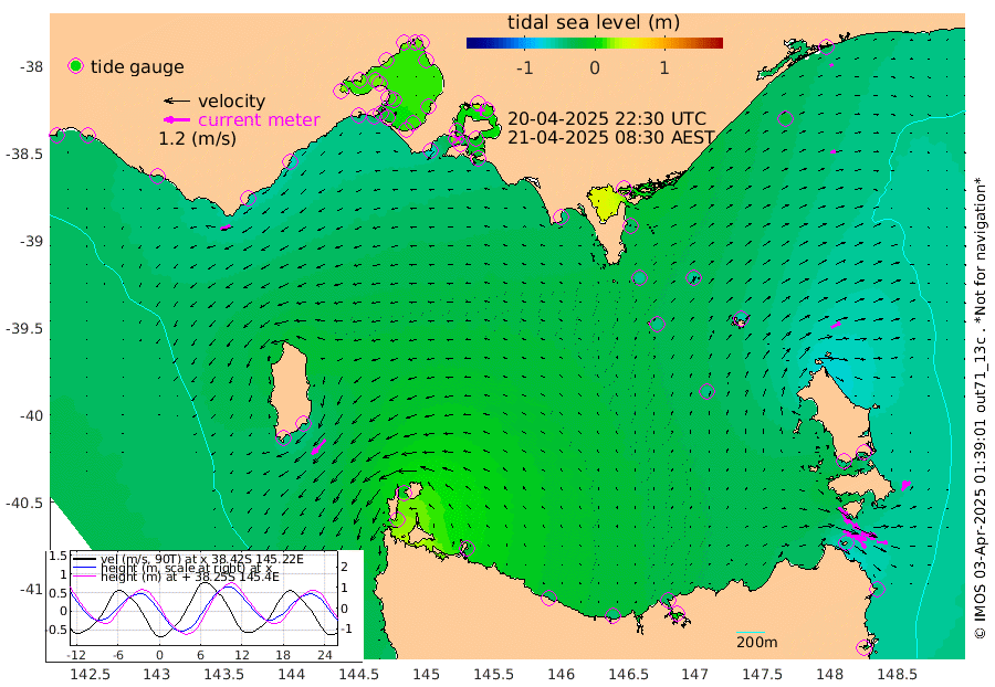 70cm/s 113T +9cm/s rms + 16cm/s 128T. CWTb1 63m 63cm/s 106T +8cm/s rms + 14cm/s 130T. C1A1 56m 92cm/s 104T +8cm/s rms + 12cm/s 12T. C1A3 27m 57cm/s 130T +0cm/s rms + 0cm/s 0T. CW1 32m 87cm/s 130T +11cm/s rms + 9cm/s 121T. CW2A1 44m 61cm/s 144T +7cm/s rms + 12cm/s 156T. CW2A2 44m 70cm/s 152T +7cm/s rms + 4cm/s 115T. CW3 33m 94cm/s 112T +9cm/s rms + 6cm/s 84T. CW4A1 30m 49cm/s 94T +5cm/s rms + 7cm/s 87T. CW4A2 36m 46cm/s 12T +9cm/s rms + 16cm/s 35T. CW6A1 37m 53cm/s 41T +6cm/s rms + 4cm/s 94T. CW6A2 31m 45cm/s 62T +4cm/s rms + 6cm/s 137T. BASS-CS91 47m 24cm/s 74T +11cm/s rms + 3cm/s -58T. BASS-CS91 70m 15cm/s 69T +10cm/s rms + 1cm/s 137T. BASS-CS91 47m 90cm/s -137T +10cm/s rms + 3cm/s 42T. BASS-CS91 53m 49cm/s -115T +8cm/s rms + 2cm/s 81T. BASS-CS91 64m 23cm/s -110T +6cm/s rms + 5cm/s 151T. BASS-UN91 115m 25cm/s -156T +4cm/s rms + 3cm/s 111T. Tas91 UNSW Mooring #1 65m 95m -32cm Lakes Entrance (Outer) -20cm Barracouta Platform -51cm Hogan Island 15cm Port Welshpool Pier -38cm Rabbit Island -51cm East Moncoeur Island -49cm Curtis Island -46cm Waratah Bay -22cm San Remo -9cm Elizabeth Island 14cm Bouchier Channel 29cm Tooradin -31cm Cowes Jetty -21cm Western Port (Stony Point) 20cm Western Port (Sandy Point) -65cm Flinders Jetty 16cm Mornington 17cm Sandringham 14cm Rosebud Jetty 15cm Hovell Pile -8cm South Channel -39cm Point Lonsdale -18cm Queenscliff 15cm West Channel Pile -48cm Barwon Heads 14cm St Leonards 19cm Point Richards (Corio Bay) 18cm Point Richards Channel 23cm Geelong 17cm Werribee 17cm Altona 20cm Wilson Spit 19cm Melbourne (Williamstown) 19cm St Kilda -66cm Lorne -62cm Apollo Bay -59cm Garden Cove -48cm Bass Pyramid -48cm Seal Bay -48cm King Island (Grassy) 20cm Stack Island -6cm Three Hummock Island -17cm Stanley -39cm Burnie -44cm Devonport -39cm Low Head 3cm Bell Bay -47cm Big River Cove -42cm Lady Barron Harbour -56cm Swan Island -45cm Eddystone Point -28cm St Helens -44cm Port Campbell -41cm Warrnambool -38cm Port Fairy