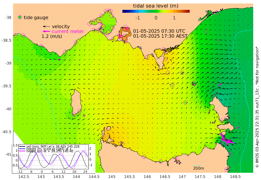 121cm/s 113T +9cm/s rms + 16cm/s 128T. CWTb1 63m 109cm/s 106T +8cm/s rms + 14cm/s 130T. C1A1 56m 169cm/s 104T +8cm/s rms + 12cm/s 12T. C1A3 27m 106cm/s 127T +0cm/s rms + 0cm/s 0T. CW1 32m 156cm/s 130T +11cm/s rms + 9cm/s 121T. CW2A1 44m 108cm/s 143T +7cm/s rms + 12cm/s 156T. CW2A2 44m 124cm/s 152T +7cm/s rms + 4cm/s 115T. CW3 33m 166cm/s 109T +9cm/s rms + 6cm/s 84T. CW4A1 30m 81cm/s 105T +5cm/s rms + 7cm/s 87T. CW4A2 36m 36cm/s 40T +9cm/s rms + 16cm/s 35T. CW6A1 37m 45cm/s 48T +6cm/s rms + 4cm/s 94T. CW6A2 31m 68cm/s 59T +4cm/s rms + 6cm/s 137T. BASS-CS91 47m 23cm/s 97T +11cm/s rms + 3cm/s -58T. BASS-CS91 70m 4cm/s -176T +10cm/s rms + 1cm/s 137T. BASS-CS91 47m 36cm/s -123T +10cm/s rms + 3cm/s 42T. BASS-CS91 53m 38cm/s -110T +8cm/s rms + 2cm/s 81T. BASS-CS91 64m 5cm/s 3T +6cm/s rms + 5cm/s 151T. BASS-UN91 115m 8cm/s -76T +4cm/s rms + 3cm/s 111T. Tas91 UNSW Mooring #1 65m 95m -7cm Lakes Entrance (Outer) 0cm Barracouta Platform 28cm Hogan Island 97cm Port Welshpool Pier 57cm Rabbit Island 41cm East Moncoeur Island 27cm Curtis Island 44cm Waratah Bay 90cm San Remo 105cm Elizabeth Island 132cm Bouchier Channel 136cm Tooradin 83cm Cowes Jetty 90cm Western Port (Stony Point) 133cm Western Port (Sandy Point) 36cm Flinders Jetty 34cm Mornington 37cm Sandringham 32cm Rosebud Jetty 32cm Hovell Pile 26cm South Channel 23cm Point Lonsdale 23cm Queenscliff 33cm West Channel Pile 18cm Barwon Heads 34cm St Leonards 39cm Point Richards (Corio Bay) 38cm Point Richards Channel 41cm Geelong 30cm Werribee 37cm Altona 40cm Wilson Spit 36cm Melbourne (Williamstown) 38cm St Kilda 21cm Lorne 18cm Apollo Bay 3cm Garden Cove 20cm Bass Pyramid 33cm Seal Bay 26cm King Island (Grassy) 74cm Stack Island 59cm Three Hummock Island 49cm Stanley 31cm Burnie 26cm Devonport 29cm Low Head 70cm Bell Bay 22cm Big River Cove 2cm Lady Barron Harbour -30cm Swan Island -23cm Eddystone Point -19cm St Helens 8cm Port Campbell 25cm Warrnambool 25cm Port Fairy