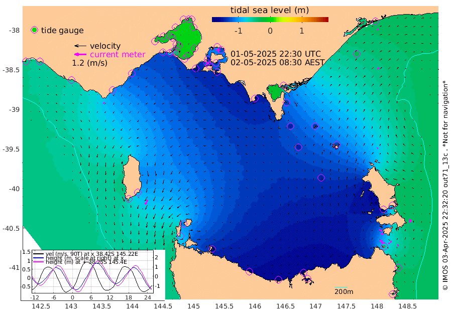 8cm/s -101T +9cm/s rms + 16cm/s 128T. CWTb1 63m 12cm/s -91T +8cm/s rms + 14cm/s 130T. C1A1 56m 37cm/s -83T +8cm/s rms + 12cm/s 12T. C1A3 27m 15cm/s -72T +0cm/s rms + 0cm/s 0T. CW1 32m 25cm/s -60T +11cm/s rms + 9cm/s 121T. CW2A1 44m 14cm/s -40T +7cm/s rms + 12cm/s 156T. CW2A2 44m 17cm/s -38T +7cm/s rms + 4cm/s 115T. CW3 33m 33cm/s -78T +9cm/s rms + 6cm/s 84T. CW4A1 30m 17cm/s -24T +5cm/s rms + 7cm/s 87T. CW4A2 36m 33cm/s 0T +9cm/s rms + 16cm/s 35T. CW6A1 37m 32cm/s 30T +6cm/s rms + 4cm/s 94T. CW6A2 31m 11cm/s -6T +4cm/s rms + 6cm/s 137T. BASS-CS91 47m 23cm/s 48T +11cm/s rms + 3cm/s -58T. BASS-CS91 70m 17cm/s 65T +10cm/s rms + 1cm/s 137T. BASS-CS91 47m 54cm/s -150T +10cm/s rms + 3cm/s 42T. BASS-CS91 53m 19cm/s -133T +8cm/s rms + 2cm/s 81T. BASS-CS91 64m 38cm/s -150T +6cm/s rms + 5cm/s 151T. BASS-UN91 115m 31cm/s 176T +4cm/s rms + 3cm/s 111T. Tas91 UNSW Mooring #1 65m 95m -32cm Lakes Entrance (Outer) -31cm Barracouta Platform -130cm Hogan Island -103cm Port Welshpool Pier -134cm Rabbit Island -146cm East Moncoeur Island -146cm Curtis Island -161cm Waratah Bay -149cm San Remo -135cm Elizabeth Island -127cm Bouchier Channel -106cm Tooradin -148cm Cowes Jetty -144cm Western Port (Stony Point) -118cm Western Port (Sandy Point) -153cm Flinders Jetty -8cm Mornington -9cm Sandringham -10cm Rosebud Jetty -10cm Hovell Pile -44cm South Channel -92cm Point Lonsdale -58cm Queenscliff -11cm West Channel Pile -108cm Barwon Heads -11cm St Leonards -9cm Point Richards (Corio Bay) -9cm Point Richards Channel -5cm Geelong -7cm Werribee -9cm Altona -8cm Wilson Spit -8cm Melbourne (Williamstown) -9cm St Kilda -127cm Lorne -104cm Apollo Bay -125cm Garden Cove -145cm Bass Pyramid -72cm Seal Bay -86cm King Island (Grassy) -84cm Stack Island -110cm Three Hummock Island -163cm Stanley -176cm Burnie -179cm Devonport -173cm Low Head -152cm Bell Bay -152cm Big River Cove -92cm Lady Barron Harbour -57cm Swan Island -26cm Eddystone Point -50cm St Helens -52cm Port Campbell -54cm Warrnambool -50cm Port Fairy