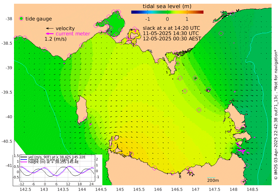 46cm/s 109T +9cm/s rms + 16cm/s 128T. CWTb1 63m 49cm/s 102T +8cm/s rms + 14cm/s 130T. C1A1 56m 95cm/s 104T +8cm/s rms + 12cm/s 12T. C1A3 27m 55cm/s 128T +0cm/s rms + 0cm/s 0T. CW1 32m 75cm/s 129T +11cm/s rms + 9cm/s 121T. CW2A1 44m 59cm/s 143T +7cm/s rms + 12cm/s 156T. CW2A2 44m 58cm/s 153T +7cm/s rms + 4cm/s 115T. CW3 33m 82cm/s 109T +9cm/s rms + 6cm/s 84T. CW4A1 30m 45cm/s 107T +5cm/s rms + 7cm/s 87T. CW4A2 36m 13cm/s 44T +9cm/s rms + 16cm/s 35T. CW6A1 37m 23cm/s 54T +6cm/s rms + 4cm/s 94T. CW6A2 31m 23cm/s 71T +4cm/s rms + 6cm/s 137T. BASS-CS91 47m 7cm/s 114T +11cm/s rms + 3cm/s -58T. BASS-CS91 70m 2cm/s 115T +10cm/s rms + 1cm/s 137T. BASS-CS91 47m 39cm/s -129T +10cm/s rms + 3cm/s 42T. BASS-CS91 53m 22cm/s -109T +8cm/s rms + 2cm/s 81T. BASS-CS91 64m 13cm/s -29T +6cm/s rms + 5cm/s 151T. BASS-UN91 115m 10cm/s -97T +4cm/s rms + 3cm/s 111T. Tas91 UNSW Mooring #1 65m 95m -16cm Lakes Entrance (Outer) -4cm Barracouta Platform 14cm Hogan Island 39cm Port Welshpool Pier 22cm Rabbit Island 24cm East Moncoeur Island 27cm Curtis Island 41cm Waratah Bay 51cm San Remo 49cm Elizabeth Island 61cm Bouchier Channel 56cm Tooradin 45cm Cowes Jetty 47cm Western Port (Stony Point) 57cm Western Port (Sandy Point) 30cm Flinders Jetty 13cm Mornington 15cm Sandringham 13cm Rosebud Jetty 13cm Hovell Pile 14cm South Channel 18cm Point Lonsdale 15cm Queenscliff 14cm West Channel Pile 18cm Barwon Heads 13cm St Leonards 15cm Point Richards (Corio Bay) 15cm Point Richards Channel 15cm Geelong 13cm Werribee 15cm Altona 16cm Wilson Spit 14cm Melbourne (Williamstown) 15cm St Kilda 18cm Lorne 8cm Apollo Bay 11cm Garden Cove 24cm Bass Pyramid -2cm Seal Bay 9cm King Island (Grassy) 48cm Stack Island 50cm Three Hummock Island 62cm Stanley 53cm Burnie 50cm Devonport 50cm Low Head 67cm Bell Bay 30cm Big River Cove 4cm Lady Barron Harbour -27cm Swan Island -33cm Eddystone Point 3cm St Helens 2cm Port Campbell 1cm Warrnambool 1cm Port Fairy