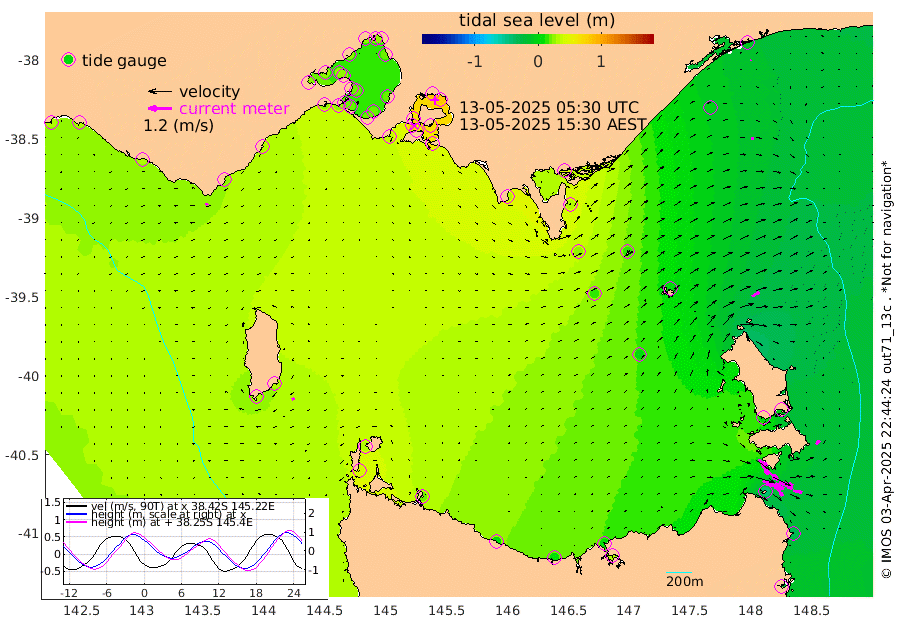 75cm/s 114T +9cm/s rms + 16cm/s 128T. CWTb1 63m 67cm/s 106T +8cm/s rms + 14cm/s 130T. C1A1 56m 92cm/s 104T +8cm/s rms + 12cm/s 12T. C1A3 27m 59cm/s 126T +0cm/s rms + 0cm/s 0T. CW1 32m 96cm/s 130T +11cm/s rms + 9cm/s 121T. CW2A1 44m 60cm/s 144T +7cm/s rms + 12cm/s 156T. CW2A2 44m 75cm/s 151T +7cm/s rms + 4cm/s 115T. CW3 33m 101cm/s 109T +9cm/s rms + 6cm/s 84T. CW4A1 30m 45cm/s 101T +5cm/s rms + 7cm/s 87T. CW4A2 36m 20cm/s 35T +9cm/s rms + 16cm/s 35T. CW6A1 37m 24cm/s 48T +6cm/s rms + 4cm/s 94T. CW6A2 31m 41cm/s 58T +4cm/s rms + 6cm/s 137T. BASS-CS91 47m 12cm/s 98T +11cm/s rms + 3cm/s -58T. BASS-CS91 70m 3cm/s -146T +10cm/s rms + 1cm/s 137T. BASS-CS91 47m 14cm/s -119T +10cm/s rms + 3cm/s 42T. BASS-CS91 53m 15cm/s -109T +8cm/s rms + 2cm/s 81T. BASS-CS91 64m 2cm/s 82T +6cm/s rms + 5cm/s 151T. BASS-UN91 115m 2cm/s -75T +4cm/s rms + 3cm/s 111T. Tas91 UNSW Mooring #1 65m 95m -10cm Lakes Entrance (Outer) -2cm Barracouta Platform 16cm Hogan Island 45cm Port Welshpool Pier 34cm Rabbit Island 26cm East Moncoeur Island 17cm Curtis Island 33cm Waratah Bay 63cm San Remo 65cm Elizabeth Island 84cm Bouchier Channel 86cm Tooradin 61cm Cowes Jetty 62cm Western Port (Stony Point) 82cm Western Port (Sandy Point) 35cm Flinders Jetty 20cm Mornington 22cm Sandringham 19cm Rosebud Jetty 21cm Hovell Pile 20cm South Channel 24cm Point Lonsdale 19cm Queenscliff 21cm West Channel Pile 23cm Barwon Heads 21cm St Leonards 25cm Point Richards (Corio Bay) 23cm Point Richards Channel 26cm Geelong 23cm Werribee 23cm Altona 24cm Wilson Spit 23cm Melbourne (Williamstown) 24cm St Kilda 29cm Lorne 28cm Apollo Bay 0cm Garden Cove 3cm Bass Pyramid 32cm Seal Bay 32cm King Island (Grassy) 42cm Stack Island 31cm Three Hummock Island 21cm Stanley 11cm Burnie 8cm Devonport 8cm Low Head 29cm Bell Bay 5cm Big River Cove -5cm Lady Barron Harbour -41cm Swan Island -31cm Eddystone Point -21cm St Helens 29cm Port Campbell 31cm Warrnambool 30cm Port Fairy