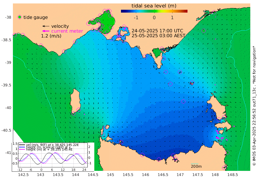 18cm/s -76T +9cm/s rms + 16cm/s 128T. CWTb1 63m 23cm/s -79T +8cm/s rms + 14cm/s 130T. C1A1 56m 66cm/s -77T +8cm/s rms + 12cm/s 12T. C1A3 27m 29cm/s -60T +0cm/s rms + 0cm/s 0T. CW1 32m 38cm/s -54T +11cm/s rms + 9cm/s 121T. CW2A1 44m 34cm/s -40T +7cm/s rms + 12cm/s 156T. CW2A2 44m 30cm/s -29T +7cm/s rms + 4cm/s 115T. CW3 33m 43cm/s -74T +9cm/s rms + 6cm/s 84T. CW4A1 30m 32cm/s -48T +5cm/s rms + 7cm/s 87T. CW4A2 36m 23cm/s 5T +9cm/s rms + 16cm/s 35T. CW6A1 37m 14cm/s 26T +6cm/s rms + 4cm/s 94T. CW6A2 31m 14cm/s -76T +4cm/s rms + 6cm/s 137T. BASS-CS91 47m 13cm/s 26T +11cm/s rms + 3cm/s -58T. BASS-CS91 70m 9cm/s 65T +10cm/s rms + 1cm/s 137T. BASS-CS91 47m 12cm/s -179T +10cm/s rms + 3cm/s 42T. BASS-CS91 53m 7cm/s 103T +8cm/s rms + 2cm/s 81T. BASS-CS91 64m 19cm/s -156T +6cm/s rms + 5cm/s 151T. BASS-UN91 115m 14cm/s 173T +4cm/s rms + 3cm/s 111T. Tas91 UNSW Mooring #1 65m 95m -19cm Lakes Entrance (Outer) -16cm Barracouta Platform -94cm Hogan Island -92cm Port Welshpool Pier -93cm Rabbit Island -101cm East Moncoeur Island -101cm Curtis Island -110cm Waratah Bay -101cm San Remo -93cm Elizabeth Island -86cm Bouchier Channel -75cm Tooradin -92cm Cowes Jetty -97cm Western Port (Stony Point) -89cm Western Port (Sandy Point) -93cm Flinders Jetty -5cm Mornington -4cm Sandringham -7cm Rosebud Jetty -7cm Hovell Pile -26cm South Channel -54cm Point Lonsdale -34cm Queenscliff -7cm West Channel Pile -68cm Barwon Heads -8cm St Leonards -6cm Point Richards (Corio Bay) -7cm Point Richards Channel -4cm Geelong -3cm Werribee -5cm Altona -7cm Wilson Spit -5cm Melbourne (Williamstown) -6cm St Kilda -72cm Lorne -59cm Apollo Bay -87cm Garden Cove -108cm Bass Pyramid -40cm Seal Bay -50cm King Island (Grassy) -79cm Stack Island -85cm Three Hummock Island -129cm Stanley -134cm Burnie -136cm Devonport -134cm Low Head -128cm Bell Bay -119cm Big River Cove -69cm Lady Barron Harbour -43cm Swan Island -18cm Eddystone Point -39cm St Helens -17cm Port Campbell -25cm Warrnambool -23cm Port Fairy