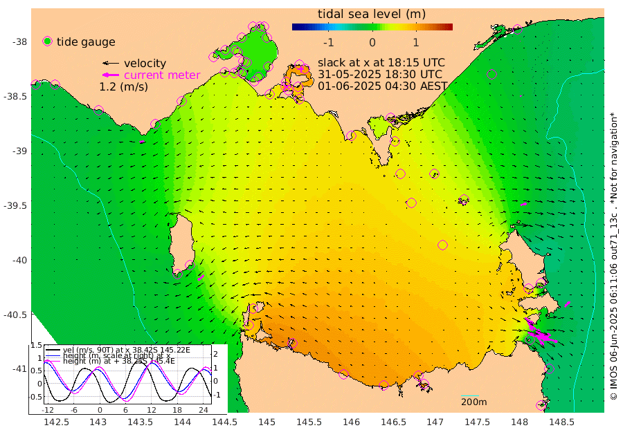 73cm/s 108T +9cm/s rms + 16cm/s 128T. CWTb1 63m 77cm/s 102T +8cm/s rms + 14cm/s 130T. C1A1 56m 147cm/s 105T +8cm/s rms + 12cm/s 12T. C1A3 27m 77cm/s 128T +0cm/s rms + 0cm/s 0T. CW1 32m 120cm/s 129T +11cm/s rms + 9cm/s 121T. CW2A1 44m 83cm/s 144T +7cm/s rms + 12cm/s 156T. CW2A2 44m 94cm/s 152T +7cm/s rms + 4cm/s 115T. CW3 33m 134cm/s 109T +9cm/s rms + 6cm/s 84T. CW4A1 30m 63cm/s 108T +5cm/s rms + 7cm/s 87T. CW4A2 36m 21cm/s 21T +9cm/s rms + 16cm/s 35T. CW6A1 37m 53cm/s 41T +6cm/s rms + 4cm/s 94T. CW6A2 31m 43cm/s 76T +4cm/s rms + 6cm/s 137T. BASS-CS91 47m 10cm/s 128T +11cm/s rms + 3cm/s -58T. BASS-CS91 70m 2cm/s 78T +10cm/s rms + 1cm/s 137T. BASS-CS91 47m 56cm/s -130T +10cm/s rms + 3cm/s 42T. BASS-CS91 53m 34cm/s -107T +8cm/s rms + 2cm/s 81T. BASS-CS91 64m 22cm/s -39T +6cm/s rms + 5cm/s 151T. BASS-UN91 115m 13cm/s -106T +4cm/s rms + 3cm/s 111T. Tas91 UNSW Mooring #1 65m 95m -17cm Lakes Entrance (Outer) -1cm Barracouta Platform 45cm Hogan Island 82cm Port Welshpool Pier 57cm Rabbit Island 60cm East Moncoeur Island 58cm Curtis Island 70cm Waratah Bay 87cm San Remo 92cm Elizabeth Island 105cm Bouchier Channel 104cm Tooradin 78cm Cowes Jetty 83cm Western Port (Stony Point) 105cm Western Port (Sandy Point) 47cm Flinders Jetty 19cm Mornington 21cm Sandringham 19cm Rosebud Jetty 19cm Hovell Pile 20cm South Channel 23cm Point Lonsdale 20cm Queenscliff 20cm West Channel Pile 25cm Barwon Heads 20cm St Leonards 23cm Point Richards (Corio Bay) 22cm Point Richards Channel 23cm Geelong 19cm Werribee 21cm Altona 22cm Wilson Spit 21cm Melbourne (Williamstown) 22cm St Kilda 18cm Lorne 0cm Apollo Bay 35cm Garden Cove 61cm Bass Pyramid -11cm Seal Bay 1cm King Island (Grassy) 83cm Stack Island 78cm Three Hummock Island 111cm Stanley 101cm Burnie 98cm Devonport 98cm Low Head 123cm Bell Bay 73cm Big River Cove 25cm Lady Barron Harbour -27cm Swan Island -36cm Eddystone Point 8cm St Helens -29cm Port Campbell -25cm Warrnambool -24cm Port Fairy