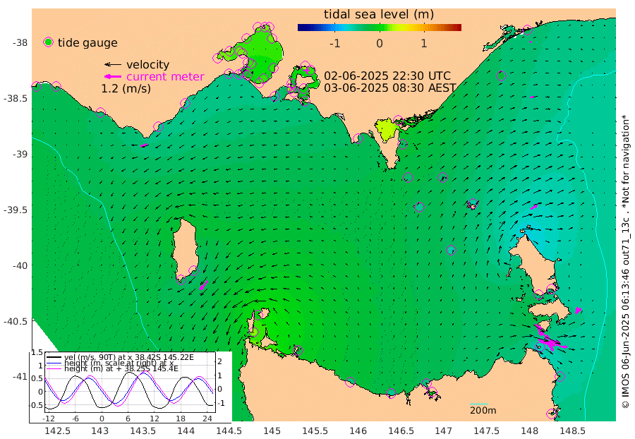 80cm/s 114T +9cm/s rms + 16cm/s 128T. CWTb1 63m 70cm/s 107T +8cm/s rms + 14cm/s 130T. C1A1 56m 108cm/s 105T +8cm/s rms + 12cm/s 12T. C1A3 27m 62cm/s 128T +0cm/s rms + 0cm/s 0T. CW1 32m 98cm/s 130T +11cm/s rms + 9cm/s 121T. CW2A1 44m 68cm/s 142T +7cm/s rms + 12cm/s 156T. CW2A2 44m 77cm/s 152T +7cm/s rms + 4cm/s 115T. CW3 33m 105cm/s 110T +9cm/s rms + 6cm/s 84T. CW4A1 30m 54cm/s 96T +5cm/s rms + 7cm/s 87T. CW4A2 36m 43cm/s 15T +9cm/s rms + 16cm/s 35T. CW6A1 37m 52cm/s 46T +6cm/s rms + 4cm/s 94T. CW6A2 31m 53cm/s 58T +4cm/s rms + 6cm/s 137T. BASS-CS91 47m 26cm/s 78T +11cm/s rms + 3cm/s -58T. BASS-CS91 70m 13cm/s 73T +10cm/s rms + 1cm/s 137T. BASS-CS91 47m 85cm/s -137T +10cm/s rms + 3cm/s 42T. BASS-CS91 53m 48cm/s -115T +8cm/s rms + 2cm/s 81T. BASS-CS91 64m 21cm/s -112T +6cm/s rms + 5cm/s 151T. BASS-UN91 115m 23cm/s -156T +4cm/s rms + 3cm/s 111T. Tas91 UNSW Mooring #1 65m 95m -33cm Lakes Entrance (Outer) -20cm Barracouta Platform -45cm Hogan Island 11cm Port Welshpool Pier -37cm Rabbit Island -44cm East Moncoeur Island -51cm Curtis Island -48cm Waratah Bay -16cm San Remo -2cm Elizabeth Island 15cm Bouchier Channel 29cm Tooradin -24cm Cowes Jetty -17cm Western Port (Stony Point) 24cm Western Port (Sandy Point) -56cm Flinders Jetty 16cm Mornington 17cm Sandringham 15cm Rosebud Jetty 14cm Hovell Pile -8cm South Channel -36cm Point Lonsdale -17cm Queenscliff 14cm West Channel Pile -48cm Barwon Heads 15cm St Leonards 19cm Point Richards (Corio Bay) 18cm Point Richards Channel 22cm Geelong 15cm Werribee 17cm Altona 20cm Wilson Spit 18cm Melbourne (Williamstown) 18cm St Kilda -58cm Lorne -54cm Apollo Bay -57cm Garden Cove -57cm Bass Pyramid -34cm Seal Bay -37cm King Island (Grassy) 23cm Stack Island -4cm Three Hummock Island -26cm Stanley -45cm Burnie -51cm Devonport -46cm Low Head -7cm Bell Bay -46cm Big River Cove -46cm Lady Barron Harbour -67cm Swan Island -45cm Eddystone Point -32cm St Helens -44cm Port Campbell -30cm Warrnambool -26cm Port Fairy