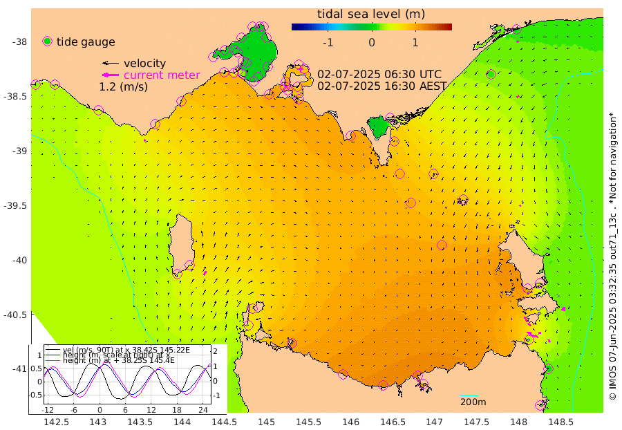 6cm/s 65T +9cm/s rms + 16cm/s 128T. CWTb1 63m 13cm/s 93T +8cm/s rms + 14cm/s 130T. C1A1 56m 52cm/s 105T +8cm/s rms + 12cm/s 12T. C1A3 27m 16cm/s 118T +0cm/s rms + 0cm/s 0T. CW1 32m 28cm/s 127T +11cm/s rms + 9cm/s 121T. CW2A1 44m 16cm/s 125T +7cm/s rms + 12cm/s 156T. CW2A2 44m 23cm/s 147T +7cm/s rms + 4cm/s 115T. CW3 33m 34cm/s 104T +9cm/s rms + 6cm/s 84T. CW4A1 30m 24cm/s 153T +5cm/s rms + 7cm/s 87T. CW4A2 36m 29cm/s -177T +9cm/s rms + 16cm/s 35T. CW6A1 37m 26cm/s -150T +6cm/s rms + 4cm/s 94T. CW6A2 31m 10cm/s 151T +4cm/s rms + 6cm/s 137T. BASS-CS91 47m 21cm/s -128T +11cm/s rms + 3cm/s -58T. BASS-CS91 70m 15cm/s -112T +10cm/s rms + 1cm/s 137T. BASS-CS91 47m 34cm/s 33T +10cm/s rms + 3cm/s 42T. BASS-CS91 53m 13cm/s 45T +8cm/s rms + 2cm/s 81T. BASS-CS91 64m 17cm/s 45T +6cm/s rms + 5cm/s 151T. BASS-UN91 115m 16cm/s 11T +4cm/s rms + 3cm/s 111T. Tas91 UNSW Mooring #1 65m 95m 11cm Lakes Entrance (Outer) 14cm Barracouta Platform 82cm Hogan Island 62cm Port Welshpool Pier 88cm Rabbit Island 93cm East Moncoeur Island 99cm Curtis Island 112cm Waratah Bay 99cm San Remo 85cm Elizabeth Island 83cm Bouchier Channel 71cm Tooradin 97cm Cowes Jetty 99cm Western Port (Stony Point) 77cm Western Port (Sandy Point) 101cm Flinders Jetty 0cm Mornington -1cm Sandringham 0cm Rosebud Jetty 0cm Hovell Pile 24cm South Channel 60cm Point Lonsdale 34cm Queenscliff 1cm West Channel Pile 80cm Barwon Heads 3cm St Leonards 0cm Point Richards (Corio Bay) 2cm Point Richards Channel -4cm Geelong -1cm Werribee 0cm Altona 2cm Wilson Spit -2cm Melbourne (Williamstown) -1cm St Kilda 85cm Lorne 69cm Apollo Bay 80cm Garden Cove 103cm Bass Pyramid 43cm Seal Bay 54cm King Island (Grassy) 56cm Stack Island 70cm Three Hummock Island 115cm Stanley 121cm Burnie 123cm Devonport 119cm Low Head 105cm Bell Bay 103cm Big River Cove 59cm Lady Barron Harbour 30cm Swan Island 2cm Eddystone Point 22cm St Helens 37cm Port Campbell 30cm Warrnambool 28cm Port Fairy
