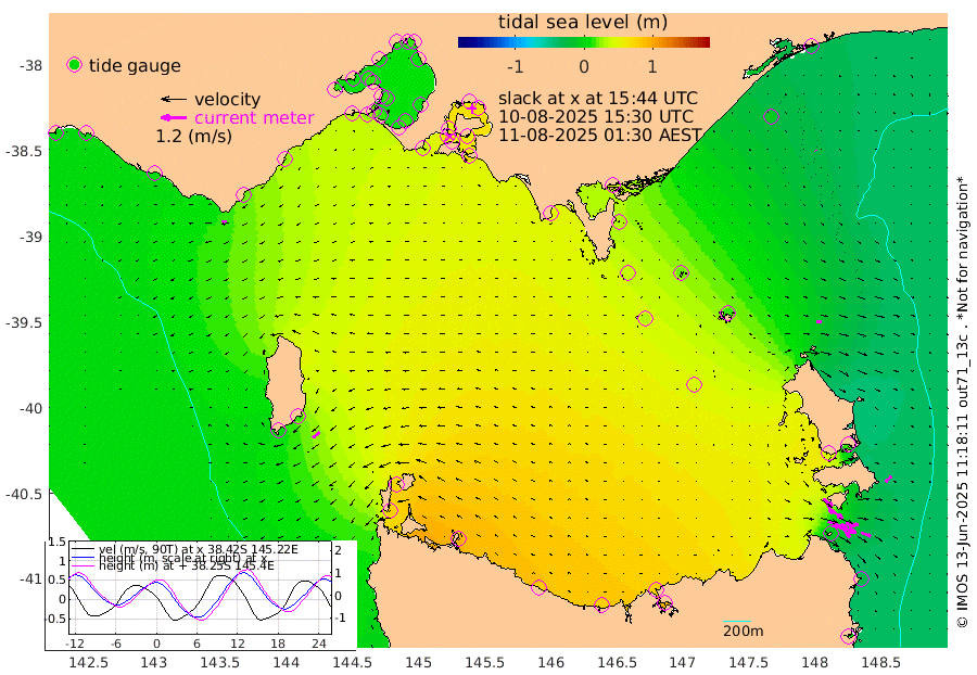 47cm/s 106T +9cm/s rms + 16cm/s 128T. CWTb1 63m 53cm/s 102T +8cm/s rms + 14cm/s 130T. C1A1 56m 117cm/s 105T +8cm/s rms + 12cm/s 12T. C1A3 27m 56cm/s 129T +0cm/s rms + 0cm/s 0T. CW1 32m 84cm/s 129T +11cm/s rms + 9cm/s 121T. CW2A1 44m 58cm/s 141T +7cm/s rms + 12cm/s 156T. CW2A2 44m 66cm/s 152T +7cm/s rms + 4cm/s 115T. CW3 33m 96cm/s 108T +9cm/s rms + 6cm/s 84T. CW4A1 30m 48cm/s 112T +5cm/s rms + 7cm/s 87T. CW4A2 36m 11cm/s 13T +9cm/s rms + 16cm/s 35T. CW6A1 37m 38cm/s 43T +6cm/s rms + 4cm/s 94T. CW6A2 31m 24cm/s 86T +4cm/s rms + 6cm/s 137T. BASS-CS91 47m 5cm/s 152T +11cm/s rms + 3cm/s -58T. BASS-CS91 70m 0cm/s 82T +10cm/s rms + 1cm/s 137T. BASS-CS91 47m 40cm/s -130T +10cm/s rms + 3cm/s 42T. BASS-CS91 53m 20cm/s -106T +8cm/s rms + 2cm/s 81T. BASS-CS91 64m 16cm/s -46T +6cm/s rms + 5cm/s 151T. BASS-UN91 115m 10cm/s -126T +4cm/s rms + 3cm/s 111T. Tas91 UNSW Mooring #1 65m 95m -24cm Lakes Entrance (Outer) -10cm Barracouta Platform 20cm Hogan Island 50cm Port Welshpool Pier 29cm Rabbit Island 34cm East Moncoeur Island 32cm Curtis Island 56cm Waratah Bay 63cm San Remo 59cm Elizabeth Island 64cm Bouchier Channel 58cm Tooradin 51cm Cowes Jetty 56cm Western Port (Stony Point) 68cm Western Port (Sandy Point) 38cm Flinders Jetty 9cm Mornington 11cm Sandringham 11cm Rosebud Jetty 11cm Hovell Pile 17cm South Channel 24cm Point Lonsdale 18cm Queenscliff 12cm West Channel Pile 28cm Barwon Heads 10cm St Leonards 13cm Point Richards (Corio Bay) 12cm Point Richards Channel 12cm Geelong 8cm Werribee 11cm Altona 11cm Wilson Spit 12cm Melbourne (Williamstown) 13cm St Kilda 26cm Lorne 18cm Apollo Bay 14cm Garden Cove 43cm Bass Pyramid 2cm Seal Bay 14cm King Island (Grassy) 73cm Stack Island 69cm Three Hummock Island 91cm Stanley 79cm Burnie 76cm Devonport 75cm Low Head 95cm Bell Bay 44cm Big River Cove 13cm Lady Barron Harbour -7cm Swan Island -26cm Eddystone Point 9cm St Helens 1cm Port Campbell 2cm Warrnambool 3cm Port Fairy