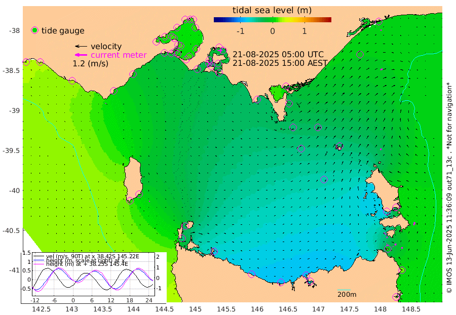 16cm/s 121T +9cm/s rms + 16cm/s 128T. CWTb1 63m 9cm/s 114T +8cm/s rms + 14cm/s 130T. C1A1 56m 14cm/s -83T +8cm/s rms + 12cm/s 12T. C1A3 27m 10cm/s 146T +0cm/s rms + 0cm/s 0T. CW1 32m 8cm/s 156T +11cm/s rms + 9cm/s 121T. CW2A1 44m 5cm/s 166T +7cm/s rms + 12cm/s 156T. CW2A2 44m 7cm/s 159T +7cm/s rms + 4cm/s 115T. CW3 33m 4cm/s 127T +9cm/s rms + 6cm/s 84T. CW4A1 30m 12cm/s 13T +5cm/s rms + 7cm/s 87T. CW4A2 36m 27cm/s 25T +9cm/s rms + 16cm/s 35T. CW6A1 37m 18cm/s 44T +6cm/s rms + 4cm/s 94T. CW6A2 31m 14cm/s -14T +4cm/s rms + 6cm/s 137T. BASS-CS91 47m 20cm/s 59T +11cm/s rms + 3cm/s -58T. BASS-CS91 70m 10cm/s 78T +10cm/s rms + 1cm/s 137T. BASS-CS91 47m 6cm/s 49T +10cm/s rms + 3cm/s 42T. BASS-CS91 53m 2cm/s -153T +8cm/s rms + 2cm/s 81T. BASS-CS91 64m 5cm/s -8T +6cm/s rms + 5cm/s 151T. BASS-UN91 115m 6cm/s -49T +4cm/s rms + 3cm/s 111T. Tas91 UNSW Mooring #1 65m 95m -1cm Lakes Entrance (Outer) -2cm Barracouta Platform -37cm Hogan Island -30cm Port Welshpool Pier -30cm Rabbit Island -40cm East Moncoeur Island -50cm Curtis Island -45cm Waratah Bay -31cm San Remo -25cm Elizabeth Island -24cm Bouchier Channel -21cm Tooradin -26cm Cowes Jetty -28cm Western Port (Stony Point) -22cm Western Port (Sandy Point) -28cm Flinders Jetty 14cm Mornington 13cm Sandringham 13cm Rosebud Jetty 12cm Hovell Pile 3cm South Channel -8cm Point Lonsdale 1cm Queenscliff 12cm West Channel Pile -19cm Barwon Heads 12cm St Leonards 13cm Point Richards (Corio Bay) 13cm Point Richards Channel 14cm Geelong 11cm Werribee 13cm Altona 13cm Wilson Spit 13cm Melbourne (Williamstown) 13cm St Kilda -8cm Lorne 3cm Apollo Bay -44cm Garden Cove -60cm Bass Pyramid 16cm Seal Bay 4cm King Island (Grassy) -47cm Stack Island -37cm Three Hummock Island -80cm Stanley -85cm Burnie -88cm Devonport -85cm Low Head -79cm Bell Bay -72cm Big River Cove -37cm Lady Barron Harbour -6cm Swan Island 17cm Eddystone Point -17cm St Helens 28cm Port Campbell 33cm Warrnambool 33cm Port Fairy