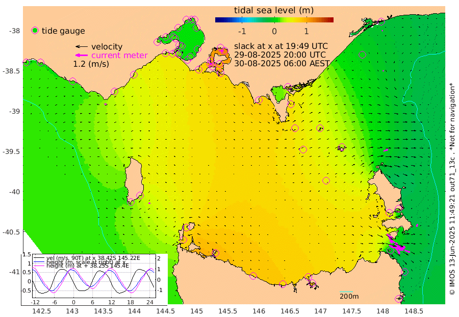 75cm/s 111T +9cm/s rms + 16cm/s 128T. CWTb1 63m 75cm/s 104T +8cm/s rms + 14cm/s 130T. C1A1 56m 127cm/s 104T +8cm/s rms + 12cm/s 12T. C1A3 27m 71cm/s 127T +0cm/s rms + 0cm/s 0T. CW1 32m 113cm/s 129T +11cm/s rms + 9cm/s 121T. CW2A1 44m 74cm/s 145T +7cm/s rms + 12cm/s 156T. CW2A2 44m 90cm/s 152T +7cm/s rms + 4cm/s 115T. CW3 33m 123cm/s 110T +9cm/s rms + 6cm/s 84T. CW4A1 30m 56cm/s 112T +5cm/s rms + 7cm/s 87T. CW4A2 36m 9cm/s 93T +9cm/s rms + 16cm/s 35T. CW6A1 37m 26cm/s 38T +6cm/s rms + 4cm/s 94T. CW6A2 31m 46cm/s 70T +4cm/s rms + 6cm/s 137T. BASS-CS91 47m 10cm/s 163T +11cm/s rms + 3cm/s -58T. BASS-CS91 70m 10cm/s -117T +10cm/s rms + 1cm/s 137T. BASS-CS91 47m 16cm/s -108T +10cm/s rms + 3cm/s 42T. BASS-CS91 53m 19cm/s -104T +8cm/s rms + 2cm/s 81T. BASS-CS91 64m 5cm/s 82T +6cm/s rms + 5cm/s 151T. BASS-UN91 115m 3cm/s -7T +4cm/s rms + 3cm/s 111T. Tas91 UNSW Mooring #1 65m 95m -13cm Lakes Entrance (Outer) 0cm Barracouta Platform 42cm Hogan Island 72cm Port Welshpool Pier 62cm Rabbit Island 57cm East Moncoeur Island 55cm Curtis Island 74cm Waratah Bay 97cm San Remo 96cm Elizabeth Island 116cm Bouchier Channel 115cm Tooradin 92cm Cowes Jetty 96cm Western Port (Stony Point) 111cm Western Port (Sandy Point) 64cm Flinders Jetty 11cm Mornington 14cm Sandringham 10cm Rosebud Jetty 13cm Hovell Pile 21cm South Channel 34cm Point Lonsdale 23cm Queenscliff 14cm West Channel Pile 39cm Barwon Heads 14cm St Leonards 17cm Point Richards (Corio Bay) 15cm Point Richards Channel 17cm Geelong 15cm Werribee 15cm Altona 16cm Wilson Spit 15cm Melbourne (Williamstown) 16cm St Kilda 43cm Lorne 31cm Apollo Bay 29cm Garden Cove 51cm Bass Pyramid 23cm Seal Bay 30cm King Island (Grassy) 84cm Stack Island 61cm Three Hummock Island 82cm Stanley 74cm Burnie 72cm Devonport 72cm Low Head 91cm Bell Bay 54cm Big River Cove 19cm Lady Barron Harbour -16cm Swan Island -28cm Eddystone Point -15cm St Helens 14cm Port Campbell 14cm Warrnambool 14cm Port Fairy
