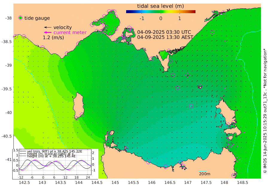 19cm/s 119T +9cm/s rms + 16cm/s 128T. CWTb1 63m 15cm/s 111T +8cm/s rms + 14cm/s 130T. C1A1 56m 8cm/s -86T +8cm/s rms + 12cm/s 12T. C1A3 27m 12cm/s 131T +0cm/s rms + 0cm/s 0T. CW1 32m 16cm/s 136T +11cm/s rms + 9cm/s 121T. CW2A1 44m 11cm/s 142T +7cm/s rms + 12cm/s 156T. CW2A2 44m 12cm/s 154T +7cm/s rms + 4cm/s 115T. CW3 33m 14cm/s 112T +9cm/s rms + 6cm/s 84T. CW4A1 30m 10cm/s 49T +5cm/s rms + 7cm/s 87T. CW4A2 36m 17cm/s 32T +9cm/s rms + 16cm/s 35T. CW6A1 37m 7cm/s 82T +6cm/s rms + 4cm/s 94T. CW6A2 31m 13cm/s -1T +4cm/s rms + 6cm/s 137T. BASS-CS91 47m 16cm/s 67T +11cm/s rms + 3cm/s -58T. BASS-CS91 70m 7cm/s 82T +10cm/s rms + 1cm/s 137T. BASS-CS91 47m 4cm/s 25T +10cm/s rms + 3cm/s 42T. BASS-CS91 53m 2cm/s -141T +8cm/s rms + 2cm/s 81T. BASS-CS91 64m 7cm/s 13T +6cm/s rms + 5cm/s 151T. BASS-UN91 115m 7cm/s -42T +4cm/s rms + 3cm/s 111T. Tas91 UNSW Mooring #1 65m 95m -1cm Lakes Entrance (Outer) 0cm Barracouta Platform -26cm Hogan Island -25cm Port Welshpool Pier -25cm Rabbit Island -28cm East Moncoeur Island -35cm Curtis Island -31cm Waratah Bay -23cm San Remo -22cm Elizabeth Island -19cm Bouchier Channel -18cm Tooradin -21cm Cowes Jetty -20cm Western Port (Stony Point) -20cm Western Port (Sandy Point) -17cm Flinders Jetty 11cm Mornington 11cm Sandringham 11cm Rosebud Jetty 10cm Hovell Pile 5cm South Channel -2cm Point Lonsdale 3cm Queenscliff 11cm West Channel Pile -11cm Barwon Heads 10cm St Leonards 11cm Point Richards (Corio Bay) 10cm Point Richards Channel 12cm Geelong 12cm Werribee 11cm Altona 11cm Wilson Spit 11cm Melbourne (Williamstown) 11cm St Kilda 0cm Lorne 9cm Apollo Bay -28cm Garden Cove -51cm Bass Pyramid 16cm Seal Bay 13cm King Island (Grassy) -31cm Stack Island -24cm Three Hummock Island -59cm Stanley -63cm Burnie -65cm Devonport -64cm Low Head -59cm Bell Bay -52cm Big River Cove -28cm Lady Barron Harbour -22cm Swan Island 1cm Eddystone Point -11cm St Helens 34cm Port Campbell 34cm Warrnambool 34cm Port Fairy