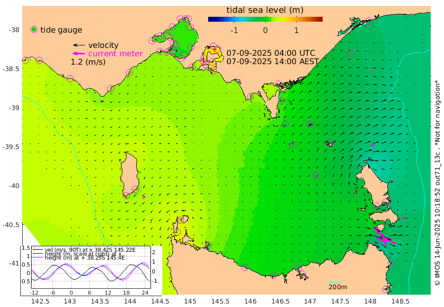 75cm/s 113T +9cm/s rms + 16cm/s 128T. CWTb1 63m 68cm/s 105T +8cm/s rms + 14cm/s 130T. C1A1 56m 98cm/s 103T +8cm/s rms + 12cm/s 12T. C1A3 27m 62cm/s 128T +0cm/s rms + 0cm/s 0T. CW1 32m 98cm/s 129T +11cm/s rms + 9cm/s 121T. CW2A1 44m 64cm/s 144T +7cm/s rms + 12cm/s 156T. CW2A2 44m 77cm/s 151T +7cm/s rms + 4cm/s 115T. CW3 33m 106cm/s 111T +9cm/s rms + 6cm/s 84T. CW4A1 30m 46cm/s 100T +5cm/s rms + 7cm/s 87T. CW4A2 36m 28cm/s 42T +9cm/s rms + 16cm/s 35T. CW6A1 37m 26cm/s 49T +6cm/s rms + 4cm/s 94T. CW6A2 31m 38cm/s 55T +4cm/s rms + 6cm/s 137T. BASS-CS91 47m 15cm/s 89T +11cm/s rms + 3cm/s -58T. BASS-CS91 70m 3cm/s 151T +10cm/s rms + 1cm/s 137T. BASS-CS91 47m 28cm/s -125T +10cm/s rms + 3cm/s 42T. BASS-CS91 53m 23cm/s -111T +8cm/s rms + 2cm/s 81T. BASS-CS91 64m 5cm/s -19T +6cm/s rms + 5cm/s 151T. BASS-UN91 115m 8cm/s -91T +4cm/s rms + 3cm/s 111T. Tas91 UNSW Mooring #1 65m 95m -28cm Lakes Entrance (Outer) -12cm Barracouta Platform -15cm Hogan Island 20cm Port Welshpool Pier 3cm Rabbit Island -4cm East Moncoeur Island -9cm Curtis Island 15cm Waratah Bay 41cm San Remo 41cm Elizabeth Island 60cm Bouchier Channel 58cm Tooradin 38cm Cowes Jetty 41cm Western Port (Stony Point) 57cm Western Port (Sandy Point) 18cm Flinders Jetty 16cm Mornington 17cm Sandringham 14cm Rosebud Jetty 15cm Hovell Pile 13cm South Channel 16cm Point Lonsdale 13cm Queenscliff 16cm West Channel Pile 15cm Barwon Heads 16cm St Leonards 18cm Point Richards (Corio Bay) 19cm Point Richards Channel 19cm Geelong 13cm Werribee 18cm Altona 19cm Wilson Spit 17cm Melbourne (Williamstown) 17cm St Kilda 22cm Lorne 22cm Apollo Bay -26cm Garden Cove -17cm Bass Pyramid 24cm Seal Bay 26cm King Island (Grassy) 37cm Stack Island 30cm Three Hummock Island 11cm Stanley -6cm Burnie -12cm Devonport -10cm Low Head 17cm Bell Bay -22cm Big River Cove -28cm Lady Barron Harbour -36cm Swan Island -31cm Eddystone Point -28cm St Helens 31cm Port Campbell 36cm Warrnambool 37cm Port Fairy
