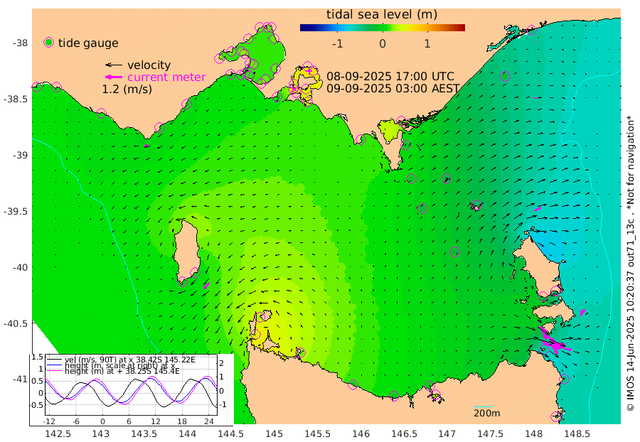 83cm/s 113T +9cm/s rms + 16cm/s 128T. CWTb1 63m 77cm/s 105T +8cm/s rms + 14cm/s 130T. C1A1 56m 119cm/s 104T +8cm/s rms + 12cm/s 12T. C1A3 27m 67cm/s 128T +0cm/s rms + 0cm/s 0T. CW1 32m 112cm/s 130T +11cm/s rms + 9cm/s 121T. CW2A1 44m 71cm/s 145T +7cm/s rms + 12cm/s 156T. CW2A2 44m 89cm/s 152T +7cm/s rms + 4cm/s 115T. CW3 33m 122cm/s 110T +9cm/s rms + 6cm/s 84T. CW4A1 30m 53cm/s 97T +5cm/s rms + 7cm/s 87T. CW4A2 36m 36cm/s 17T +9cm/s rms + 16cm/s 35T. CW6A1 37m 54cm/s 37T +6cm/s rms + 4cm/s 94T. CW6A2 31m 46cm/s 63T +4cm/s rms + 6cm/s 137T. BASS-CS91 47m 16cm/s 85T +11cm/s rms + 3cm/s -58T. BASS-CS91 70m 5cm/s 77T +10cm/s rms + 1cm/s 137T. BASS-CS91 47m 56cm/s -135T +10cm/s rms + 3cm/s 42T. BASS-CS91 53m 31cm/s -112T +8cm/s rms + 2cm/s 81T. BASS-CS91 64m 15cm/s -105T +6cm/s rms + 5cm/s 151T. BASS-UN91 115m 17cm/s -158T +4cm/s rms + 3cm/s 111T. Tas91 UNSW Mooring #1 65m 95m -43cm Lakes Entrance (Outer) -22cm Barracouta Platform -25cm Hogan Island 22cm Port Welshpool Pier -6cm Rabbit Island -11cm East Moncoeur Island -20cm Curtis Island 11cm Waratah Bay 43cm San Remo 44cm Elizabeth Island 61cm Bouchier Channel 65cm Tooradin 34cm Cowes Jetty 38cm Western Port (Stony Point) 66cm Western Port (Sandy Point) 5cm Flinders Jetty 18cm Mornington 20cm Sandringham 18cm Rosebud Jetty 19cm Hovell Pile 12cm South Channel 5cm Point Lonsdale 9cm Queenscliff 20cm West Channel Pile 0cm Barwon Heads 19cm St Leonards 23cm Point Richards (Corio Bay) 22cm Point Richards Channel 25cm Geelong 19cm Werribee 22cm Altona 22cm Wilson Spit 22cm Melbourne (Williamstown) 22cm St Kilda 1cm Lorne 0cm Apollo Bay -39cm Garden Cove -21cm Bass Pyramid -2cm Seal Bay 4cm King Island (Grassy) 49cm Stack Island 31cm Three Hummock Island 20cm Stanley -1cm Burnie -7cm Devonport -5cm Low Head 31cm Bell Bay -26cm Big River Cove -34cm Lady Barron Harbour -54cm Swan Island -50cm Eddystone Point -31cm St Helens 8cm Port Campbell 9cm Warrnambool 9cm Port Fairy