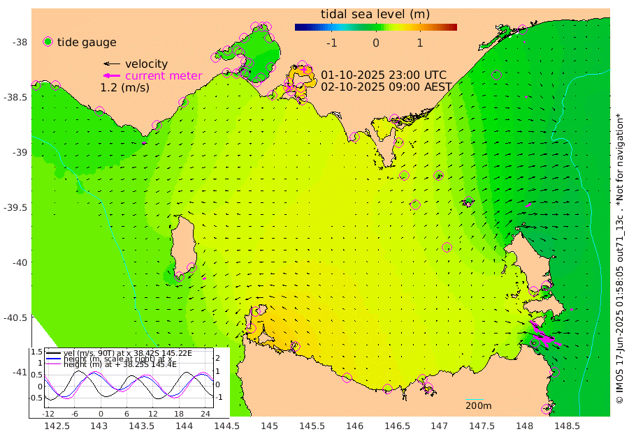 73cm/s 112T +9cm/s rms + 16cm/s 128T. CWTb1 63m 71cm/s 105T +8cm/s rms + 14cm/s 130T. C1A1 56m 113cm/s 104T +8cm/s rms + 12cm/s 12T. C1A3 27m 68cm/s 128T +0cm/s rms + 0cm/s 0T. CW1 32m 104cm/s 129T +11cm/s rms + 9cm/s 121T. CW2A1 44m 71cm/s 144T +7cm/s rms + 12cm/s 156T. CW2A2 44m 83cm/s 152T +7cm/s rms + 4cm/s 115T. CW3 33m 114cm/s 111T +9cm/s rms + 6cm/s 84T. CW4A1 30m 53cm/s 111T +5cm/s rms + 7cm/s 87T. CW4A2 36m 16cm/s 88T +9cm/s rms + 16cm/s 35T. CW6A1 37m 11cm/s 62T +6cm/s rms + 4cm/s 94T. CW6A2 31m 44cm/s 61T +4cm/s rms + 6cm/s 137T. BASS-CS91 47m 14cm/s 117T +11cm/s rms + 3cm/s -58T. BASS-CS91 70m 6cm/s -141T +10cm/s rms + 1cm/s 137T. BASS-CS91 47m 24cm/s -115T +10cm/s rms + 3cm/s 42T. BASS-CS91 53m 28cm/s -109T +8cm/s rms + 2cm/s 81T. BASS-CS91 64m 7cm/s 51T +6cm/s rms + 5cm/s 151T. BASS-UN91 115m 7cm/s -45T +4cm/s rms + 3cm/s 111T. Tas91 UNSW Mooring #1 65m 95m -4cm Lakes Entrance (Outer) 3cm Barracouta Platform 20cm Hogan Island 71cm Port Welshpool Pier 39cm Rabbit Island 26cm East Moncoeur Island 27cm Curtis Island 37cm Waratah Bay 59cm San Remo 64cm Elizabeth Island 85cm Bouchier Channel 87cm Tooradin 49cm Cowes Jetty 59cm Western Port (Stony Point) 85cm Western Port (Sandy Point) 25cm Flinders Jetty 15cm Mornington 18cm Sandringham 14cm Rosebud Jetty 15cm Hovell Pile 14cm South Channel 15cm Point Lonsdale 13cm Queenscliff 16cm West Channel Pile 16cm Barwon Heads 16cm St Leonards 19cm Point Richards (Corio Bay) 18cm Point Richards Channel 20cm Geelong 13cm Werribee 18cm Altona 20cm Wilson Spit 18cm Melbourne (Williamstown) 18cm St Kilda 16cm Lorne 14cm Apollo Bay 9cm Garden Cove 26cm Bass Pyramid 21cm Seal Bay 21cm King Island (Grassy) 62cm Stack Island 49cm Three Hummock Island 53cm Stanley 38cm Burnie 35cm Devonport 38cm Low Head 66cm Bell Bay 28cm Big River Cove 10cm Lady Barron Harbour -6cm Swan Island -16cm Eddystone Point -6cm St Helens 8cm Port Campbell 18cm Warrnambool 18cm Port Fairy