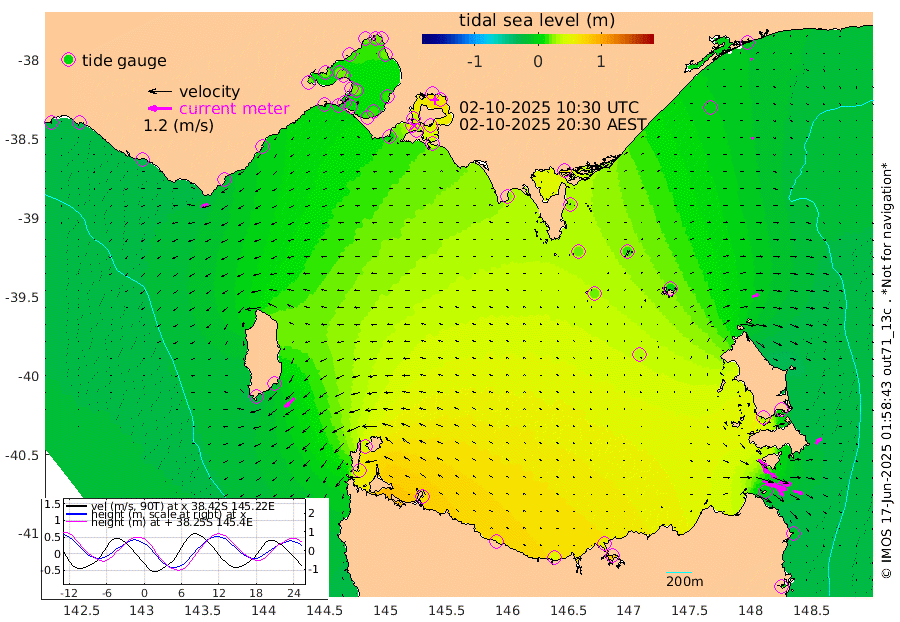 53cm/s 108T +9cm/s rms + 16cm/s 128T. CWTb1 63m 56cm/s 102T +8cm/s rms + 14cm/s 130T. C1A1 56m 108cm/s 105T +8cm/s rms + 12cm/s 12T. C1A3 27m 58cm/s 130T +0cm/s rms + 0cm/s 0T. CW1 32m 83cm/s 129T +11cm/s rms + 9cm/s 121T. CW2A1 44m 60cm/s 142T +7cm/s rms + 12cm/s 156T. CW2A2 44m 66cm/s 152T +7cm/s rms + 4cm/s 115T. CW3 33m 93cm/s 111T +9cm/s rms + 6cm/s 84T. CW4A1 30m 49cm/s 108T +5cm/s rms + 7cm/s 87T. CW4A2 36m 24cm/s 13T +9cm/s rms + 16cm/s 35T. CW6A1 37m 41cm/s 40T +6cm/s rms + 4cm/s 94T. CW6A2 31m 33cm/s 74T +4cm/s rms + 6cm/s 137T. BASS-CS91 47m 13cm/s 90T +11cm/s rms + 3cm/s -58T. BASS-CS91 70m 8cm/s 69T +10cm/s rms + 1cm/s 137T. BASS-CS91 47m 65cm/s -133T +10cm/s rms + 3cm/s 42T. BASS-CS91 53m 39cm/s -111T +8cm/s rms + 2cm/s 81T. BASS-CS91 64m 18cm/s -62T +6cm/s rms + 5cm/s 151T. BASS-UN91 115m 15cm/s -128T +4cm/s rms + 3cm/s 111T. Tas91 UNSW Mooring #1 65m 95m -9cm Lakes Entrance (Outer) -4cm Barracouta Platform 12cm Hogan Island 67cm Port Welshpool Pier 25cm Rabbit Island 17cm East Moncoeur Island 21cm Curtis Island 27cm Waratah Bay 39cm San Remo 46cm Elizabeth Island 61cm Bouchier Channel 66cm Tooradin 27cm Cowes Jetty 37cm Western Port (Stony Point) 66cm Western Port (Sandy Point) 0cm Flinders Jetty 15cm Mornington 17cm Sandringham 16cm Rosebud Jetty 17cm Hovell Pile 9cm South Channel -1cm Point Lonsdale 5cm Queenscliff 17cm West Channel Pile -2cm Barwon Heads 15cm St Leonards 20cm Point Richards (Corio Bay) 18cm Point Richards Channel 21cm Geelong 15cm Werribee 17cm Altona 19cm Wilson Spit 19cm Melbourne (Williamstown) 19cm St Kilda -16cm Lorne -21cm Apollo Bay 5cm Garden Cove 31cm Bass Pyramid -24cm Seal Bay -18cm King Island (Grassy) 58cm Stack Island 44cm Three Hummock Island 66cm Stanley 53cm Burnie 50cm Devonport 53cm Low Head 81cm Bell Bay 33cm Big River Cove 11cm Lady Barron Harbour -4cm Swan Island -16cm Eddystone Point 7cm St Helens -32cm Port Campbell -29cm Warrnambool -28cm Port Fairy