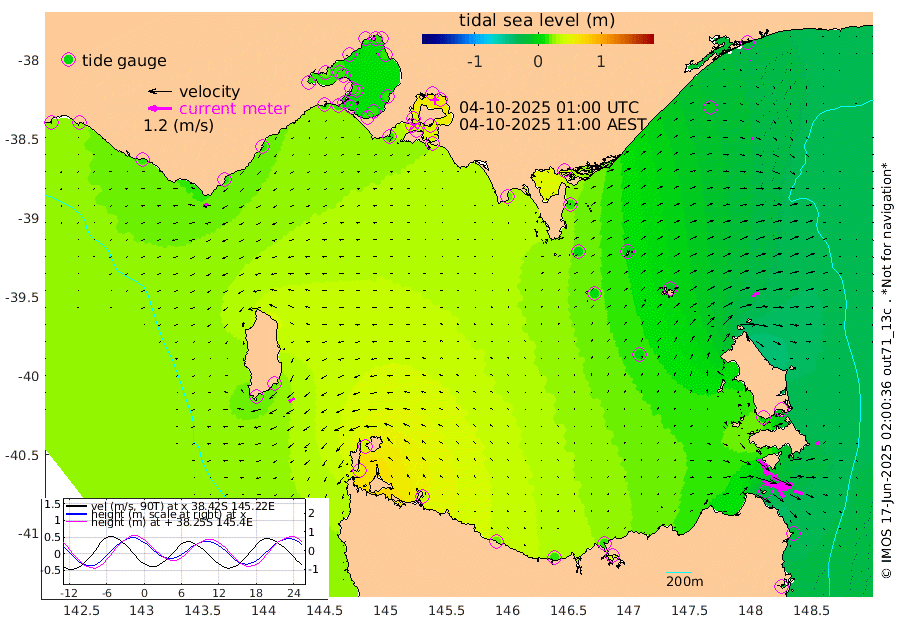 71cm/s 112T +9cm/s rms + 16cm/s 128T. CWTb1 63m 67cm/s 105T +8cm/s rms + 14cm/s 130T. C1A1 56m 109cm/s 104T +8cm/s rms + 12cm/s 12T. C1A3 27m 65cm/s 128T +0cm/s rms + 0cm/s 0T. CW1 32m 98cm/s 129T +11cm/s rms + 9cm/s 121T. CW2A1 44m 68cm/s 143T +7cm/s rms + 12cm/s 156T. CW2A2 44m 78cm/s 152T +7cm/s rms + 4cm/s 115T. CW3 33m 108cm/s 110T +9cm/s rms + 6cm/s 84T. CW4A1 30m 50cm/s 108T +5cm/s rms + 7cm/s 87T. CW4A2 36m 18cm/s 70T +9cm/s rms + 16cm/s 35T. CW6A1 37m 17cm/s 60T +6cm/s rms + 4cm/s 94T. CW6A2 31m 39cm/s 59T +4cm/s rms + 6cm/s 137T. BASS-CS91 47m 14cm/s 102T +11cm/s rms + 3cm/s -58T. BASS-CS91 70m 4cm/s -170T +10cm/s rms + 1cm/s 137T. BASS-CS91 47m 32cm/s -123T +10cm/s rms + 3cm/s 42T. BASS-CS91 53m 28cm/s -111T +8cm/s rms + 2cm/s 81T. BASS-CS91 64m 5cm/s 16T +6cm/s rms + 5cm/s 151T. BASS-UN91 115m 8cm/s -76T +4cm/s rms + 3cm/s 111T. Tas91 UNSW Mooring #1 65m 95m -18cm Lakes Entrance (Outer) -7cm Barracouta Platform -2cm Hogan Island 43cm Port Welshpool Pier 13cm Rabbit Island 5cm East Moncoeur Island 5cm Curtis Island 21cm Waratah Bay 41cm San Remo 43cm Elizabeth Island 61cm Bouchier Channel 60cm Tooradin 32cm Cowes Jetty 40cm Western Port (Stony Point) 61cm Western Port (Sandy Point) 13cm Flinders Jetty 13cm Mornington 15cm Sandringham 12cm Rosebud Jetty 13cm Hovell Pile 11cm South Channel 11cm Point Lonsdale 10cm Queenscliff 14cm West Channel Pile 11cm Barwon Heads 13cm St Leonards 16cm Point Richards (Corio Bay) 16cm Point Richards Channel 17cm Geelong 9cm Werribee 16cm Altona 17cm Wilson Spit 15cm Melbourne (Williamstown) 15cm St Kilda 13cm Lorne 13cm Apollo Bay -11cm Garden Cove 3cm Bass Pyramid 18cm Seal Bay 20cm King Island (Grassy) 52cm Stack Island 43cm Three Hummock Island 36cm Stanley 19cm Burnie 14cm Devonport 16cm Low Head 45cm Bell Bay 4cm Big River Cove -10cm Lady Barron Harbour -17cm Swan Island -22cm Eddystone Point -12cm St Helens 15cm Port Campbell 25cm Warrnambool 26cm Port Fairy