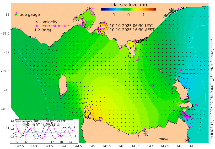 104cm/s 112T +9cm/s rms + 16cm/s 128T. CWTb1 63m 96cm/s 105T +8cm/s rms + 14cm/s 130T. C1A1 56m 168cm/s 104T +8cm/s rms + 12cm/s 12T. C1A3 27m 99cm/s 128T +0cm/s rms + 0cm/s 0T. CW1 32m 141cm/s 130T +11cm/s rms + 9cm/s 121T. CW2A1 44m 103cm/s 144T +7cm/s rms + 12cm/s 156T. CW2A2 44m 109cm/s 152T +7cm/s rms + 4cm/s 115T. CW3 33m 148cm/s 110T +9cm/s rms + 6cm/s 84T. CW4A1 30m 79cm/s 101T +5cm/s rms + 7cm/s 87T. CW4A2 36m 50cm/s 21T +9cm/s rms + 16cm/s 35T. CW6A1 37m 67cm/s 42T +6cm/s rms + 4cm/s 94T. CW6A2 31m 57cm/s 63T +4cm/s rms + 6cm/s 137T. BASS-CS91 47m 23cm/s 82T +11cm/s rms + 3cm/s -58T. BASS-CS91 70m 10cm/s 77T +10cm/s rms + 1cm/s 137T. BASS-CS91 47m 82cm/s -135T +10cm/s rms + 3cm/s 42T. BASS-CS91 53m 50cm/s -112T +8cm/s rms + 2cm/s 81T. BASS-CS91 64m 20cm/s -88T +6cm/s rms + 5cm/s 151T. BASS-UN91 115m 21cm/s -142T +4cm/s rms + 3cm/s 111T. Tas91 UNSW Mooring #1 65m 95m -39cm Lakes Entrance (Outer) -23cm Barracouta Platform -18cm Hogan Island 53cm Port Welshpool Pier 6cm Rabbit Island -4cm East Moncoeur Island -11cm Curtis Island 9cm Waratah Bay 50cm San Remo 61cm Elizabeth Island 90cm Bouchier Channel 96cm Tooradin 42cm Cowes Jetty 47cm Western Port (Stony Point) 92cm Western Port (Sandy Point) -7cm Flinders Jetty 26cm Mornington 27cm Sandringham 22cm Rosebud Jetty 24cm Hovell Pile 9cm South Channel -7cm Point Lonsdale 2cm Queenscliff 24cm West Channel Pile -12cm Barwon Heads 25cm St Leonards 30cm Point Richards (Corio Bay) 30cm Point Richards Channel 32cm Geelong 24cm Werribee 28cm Altona 31cm Wilson Spit 28cm Melbourne (Williamstown) 29cm St Kilda -25cm Lorne -30cm Apollo Bay -35cm Garden Cove -7cm Bass Pyramid -27cm Seal Bay -24cm King Island (Grassy) 63cm Stack Island 41cm Three Hummock Island 38cm Stanley 17cm Burnie 10cm Devonport 14cm Low Head 59cm Bell Bay -9cm Big River Cove -31cm Lady Barron Harbour -52cm Swan Island -46cm Eddystone Point -31cm St Helens -30cm Port Campbell -30cm Warrnambool -29cm Port Fairy