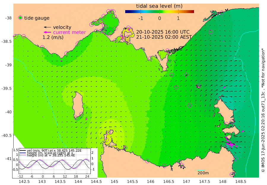 72cm/s 113T +9cm/s rms + 16cm/s 128T. CWTb1 63m 64cm/s 106T +8cm/s rms + 14cm/s 130T. C1A1 56m 95cm/s 104T +8cm/s rms + 12cm/s 12T. C1A3 27m 55cm/s 127T +0cm/s rms + 0cm/s 0T. CW1 32m 93cm/s 130T +11cm/s rms + 9cm/s 121T. CW2A1 44m 57cm/s 144T +7cm/s rms + 12cm/s 156T. CW2A2 44m 73cm/s 151T +7cm/s rms + 4cm/s 115T. CW3 33m 101cm/s 109T +9cm/s rms + 6cm/s 84T. CW4A1 30m 42cm/s 97T +5cm/s rms + 7cm/s 87T. CW4A2 36m 23cm/s 23T +9cm/s rms + 16cm/s 35T. CW6A1 37m 37cm/s 44T +6cm/s rms + 4cm/s 94T. CW6A2 31m 41cm/s 60T +4cm/s rms + 6cm/s 137T. BASS-CS91 47m 12cm/s 89T +11cm/s rms + 3cm/s -58T. BASS-CS91 70m 2cm/s 115T +10cm/s rms + 1cm/s 137T. BASS-CS91 47m 38cm/s -134T +10cm/s rms + 3cm/s 42T. BASS-CS91 53m 21cm/s -114T +8cm/s rms + 2cm/s 81T. BASS-CS91 64m 6cm/s -115T +6cm/s rms + 5cm/s 151T. BASS-UN91 115m 10cm/s -156T +4cm/s rms + 3cm/s 111T. Tas91 UNSW Mooring #1 65m 95m -27cm Lakes Entrance (Outer) -13cm Barracouta Platform -4cm Hogan Island 23cm Port Welshpool Pier 6cm Rabbit Island 7cm East Moncoeur Island -5cm Curtis Island 15cm Waratah Bay 44cm San Remo 46cm Elizabeth Island 58cm Bouchier Channel 60cm Tooradin 41cm Cowes Jetty 40cm Western Port (Stony Point) 61cm Western Port (Sandy Point) 18cm Flinders Jetty 16cm Mornington 17cm Sandringham 15cm Rosebud Jetty 16cm Hovell Pile 13cm South Channel 13cm Point Lonsdale 11cm Queenscliff 16cm West Channel Pile 10cm Barwon Heads 17cm St Leonards 19cm Point Richards (Corio Bay) 18cm Point Richards Channel 21cm Geelong 17cm Werribee 18cm Altona 19cm Wilson Spit 18cm Melbourne (Williamstown) 18cm St Kilda 15cm Lorne 13cm Apollo Bay -19cm Garden Cove -17cm Bass Pyramid 19cm Seal Bay 21cm King Island (Grassy) 42cm Stack Island 30cm Three Hummock Island 13cm Stanley 1cm Burnie -3cm Devonport -2cm Low Head 21cm Bell Bay -10cm Big River Cove -23cm Lady Barron Harbour -59cm Swan Island -45cm Eddystone Point -25cm St Helens 12cm Port Campbell 23cm Warrnambool 24cm Port Fairy