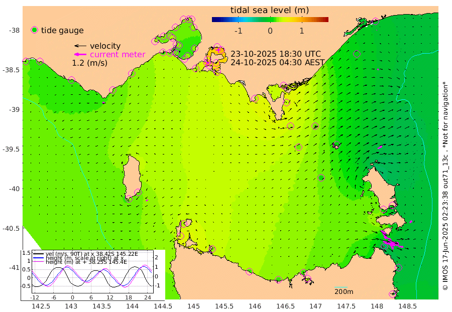 84cm/s 114T +9cm/s rms + 16cm/s 128T. CWTb1 63m 73cm/s 107T +8cm/s rms + 14cm/s 130T. C1A1 56m 105cm/s 104T +8cm/s rms + 12cm/s 12T. C1A3 27m 64cm/s 126T +0cm/s rms + 0cm/s 0T. CW1 32m 106cm/s 130T +11cm/s rms + 9cm/s 121T. CW2A1 44m 65cm/s 144T +7cm/s rms + 12cm/s 156T. CW2A2 44m 83cm/s 151T +7cm/s rms + 4cm/s 115T. CW3 33m 112cm/s 109T +9cm/s rms + 6cm/s 84T. CW4A1 30m 48cm/s 101T +5cm/s rms + 7cm/s 87T. CW4A2 36m 23cm/s 34T +9cm/s rms + 16cm/s 35T. CW6A1 37m 27cm/s 49T +6cm/s rms + 4cm/s 94T. CW6A2 31m 48cm/s 59T +4cm/s rms + 6cm/s 137T. BASS-CS91 47m 14cm/s 97T +11cm/s rms + 3cm/s -58T. BASS-CS91 70m 2cm/s -160T +10cm/s rms + 1cm/s 137T. BASS-CS91 47m 21cm/s -124T +10cm/s rms + 3cm/s 42T. BASS-CS91 53m 21cm/s -110T +8cm/s rms + 2cm/s 81T. BASS-CS91 64m 1cm/s 77T +6cm/s rms + 5cm/s 151T. BASS-UN91 115m 3cm/s -86T +4cm/s rms + 3cm/s 111T. Tas91 UNSW Mooring #1 65m 95m -7cm Lakes Entrance (Outer) -1cm Barracouta Platform 20cm Hogan Island 57cm Port Welshpool Pier 39cm Rabbit Island 30cm East Moncoeur Island 19cm Curtis Island 32cm Waratah Bay 65cm San Remo 72cm Elizabeth Island 93cm Bouchier Channel 97cm Tooradin 64cm Cowes Jetty 66cm Western Port (Stony Point) 91cm Western Port (Sandy Point) 31cm Flinders Jetty 24cm Mornington 25cm Sandringham 22cm Rosebud Jetty 23cm Hovell Pile 20cm South Channel 20cm Point Lonsdale 18cm Queenscliff 24cm West Channel Pile 16cm Barwon Heads 24cm St Leonards 28cm Point Richards (Corio Bay) 27cm Point Richards Channel 30cm Geelong 26cm Werribee 26cm Altona 28cm Wilson Spit 26cm Melbourne (Williamstown) 28cm St Kilda 20cm Lorne 18cm Apollo Bay 3cm Garden Cove 7cm Bass Pyramid 25cm Seal Bay 22cm King Island (Grassy) 46cm Stack Island 33cm Three Hummock Island 25cm Stanley 14cm Burnie 11cm Devonport 13cm Low Head 37cm Bell Bay 10cm Big River Cove -2cm Lady Barron Harbour -41cm Swan Island -29cm Eddystone Point -21cm St Helens 16cm Port Campbell 20cm Warrnambool 20cm Port Fairy