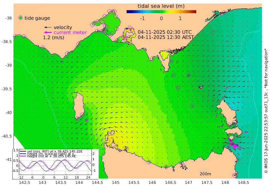 78cm/s 112T +9cm/s rms + 16cm/s 128T. CWTb1 63m 73cm/s 105T +8cm/s rms + 14cm/s 130T. C1A1 56m 129cm/s 104T +8cm/s rms + 12cm/s 12T. C1A3 27m 75cm/s 129T +0cm/s rms + 0cm/s 0T. CW1 32m 107cm/s 130T +11cm/s rms + 9cm/s 121T. CW2A1 44m 77cm/s 144T +7cm/s rms + 12cm/s 156T. CW2A2 44m 83cm/s 152T +7cm/s rms + 4cm/s 115T. CW3 33m 114cm/s 110T +9cm/s rms + 6cm/s 84T. CW4A1 30m 58cm/s 103T +5cm/s rms + 7cm/s 87T. CW4A2 36m 29cm/s 33T +9cm/s rms + 16cm/s 35T. CW6A1 37m 41cm/s 47T +6cm/s rms + 4cm/s 94T. CW6A2 31m 40cm/s 61T +4cm/s rms + 6cm/s 137T. BASS-CS91 47m 17cm/s 83T +11cm/s rms + 3cm/s -58T. BASS-CS91 70m 6cm/s 93T +10cm/s rms + 1cm/s 137T. BASS-CS91 47m 60cm/s -132T +10cm/s rms + 3cm/s 42T. BASS-CS91 53m 36cm/s -113T +8cm/s rms + 2cm/s 81T. BASS-CS91 64m 11cm/s -77T +6cm/s rms + 5cm/s 151T. BASS-UN91 115m 14cm/s -132T +4cm/s rms + 3cm/s 111T. Tas91 UNSW Mooring #1 65m 95m -35cm Lakes Entrance (Outer) -21cm Barracouta Platform -24cm Hogan Island 30cm Port Welshpool Pier -8cm Rabbit Island -13cm East Moncoeur Island -16cm Curtis Island 5cm Waratah Bay 32cm San Remo 36cm Elizabeth Island 57cm Bouchier Channel 57cm Tooradin 25cm Cowes Jetty 29cm Western Port (Stony Point) 57cm Western Port (Sandy Point) -4cm Flinders Jetty 17cm Mornington 18cm Sandringham 15cm Rosebud Jetty 16cm Hovell Pile 8cm South Channel -1cm Point Lonsdale 4cm Queenscliff 17cm West Channel Pile -4cm Barwon Heads 16cm St Leonards 20cm Point Richards (Corio Bay) 20cm Point Richards Channel 21cm Geelong 14cm Werribee 19cm Altona 21cm Wilson Spit 19cm Melbourne (Williamstown) 19cm St Kilda -8cm Lorne -10cm Apollo Bay -34cm Garden Cove -15cm Bass Pyramid -8cm Seal Bay -4cm King Island (Grassy) 51cm Stack Island 38cm Three Hummock Island 28cm Stanley 8cm Burnie 2cm Devonport 5cm Low Head 40cm Bell Bay -17cm Big River Cove -30cm Lady Barron Harbour -38cm Swan Island -36cm Eddystone Point -22cm St Helens -4cm Port Campbell 0cm Warrnambool 1cm Port Fairy