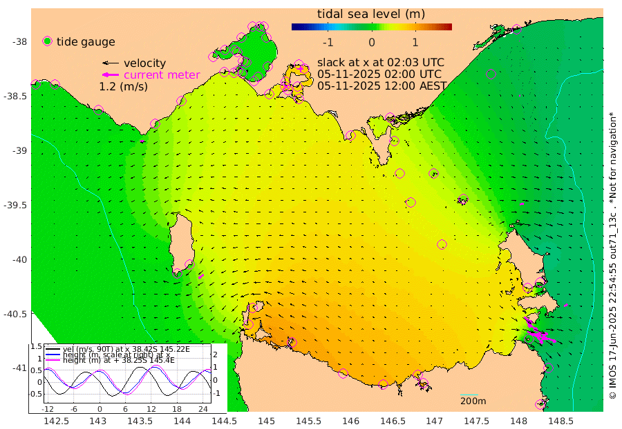 60cm/s 108T +9cm/s rms + 16cm/s 128T. CWTb1 63m 63cm/s 103T +8cm/s rms + 14cm/s 130T. C1A1 56m 139cm/s 105T +8cm/s rms + 12cm/s 12T. C1A3 27m 74cm/s 128T +0cm/s rms + 0cm/s 0T. CW1 32m 98cm/s 130T +11cm/s rms + 9cm/s 121T. CW2A1 44m 77cm/s 142T +7cm/s rms + 12cm/s 156T. CW2A2 44m 76cm/s 152T +7cm/s rms + 4cm/s 115T. CW3 33m 107cm/s 108T +9cm/s rms + 6cm/s 84T. CW4A1 30m 62cm/s 113T +5cm/s rms + 7cm/s 87T. CW4A2 36m 10cm/s 61T +9cm/s rms + 16cm/s 35T. CW6A1 37m 29cm/s 59T +6cm/s rms + 4cm/s 94T. CW6A2 31m 30cm/s 74T +4cm/s rms + 6cm/s 137T. BASS-CS91 47m 8cm/s 118T +11cm/s rms + 3cm/s -58T. BASS-CS91 70m 2cm/s 144T +10cm/s rms + 1cm/s 137T. BASS-CS91 47m 45cm/s -128T +10cm/s rms + 3cm/s 42T. BASS-CS91 53m 30cm/s -109T +8cm/s rms + 2cm/s 81T. BASS-CS91 64m 14cm/s -29T +6cm/s rms + 5cm/s 151T. BASS-UN91 115m 10cm/s -98T +4cm/s rms + 3cm/s 111T. Tas91 UNSW Mooring #1 65m 95m -21cm Lakes Entrance (Outer) -11cm Barracouta Platform 26cm Hogan Island 63cm Port Welshpool Pier 35cm Rabbit Island 39cm East Moncoeur Island 38cm Curtis Island 58cm Waratah Bay 70cm San Remo 68cm Elizabeth Island 79cm Bouchier Channel 72cm Tooradin 60cm Cowes Jetty 64cm Western Port (Stony Point) 80cm Western Port (Sandy Point) 40cm Flinders Jetty 13cm Mornington 13cm Sandringham 12cm Rosebud Jetty 13cm Hovell Pile 17cm South Channel 24cm Point Lonsdale 18cm Queenscliff 14cm West Channel Pile 28cm Barwon Heads 13cm St Leonards 15cm Point Richards (Corio Bay) 16cm Point Richards Channel 15cm Geelong 10cm Werribee 14cm Altona 16cm Wilson Spit 14cm Melbourne (Williamstown) 15cm St Kilda 25cm Lorne 14cm Apollo Bay 18cm Garden Cove 46cm Bass Pyramid 2cm Seal Bay 12cm King Island (Grassy) 79cm Stack Island 75cm Three Hummock Island 94cm Stanley 84cm Burnie 80cm Devonport 80cm Low Head 102cm Bell Bay 51cm Big River Cove 11cm Lady Barron Harbour -5cm Swan Island -19cm Eddystone Point 7cm St Helens -4cm Port Campbell -1cm Warrnambool 0cm Port Fairy