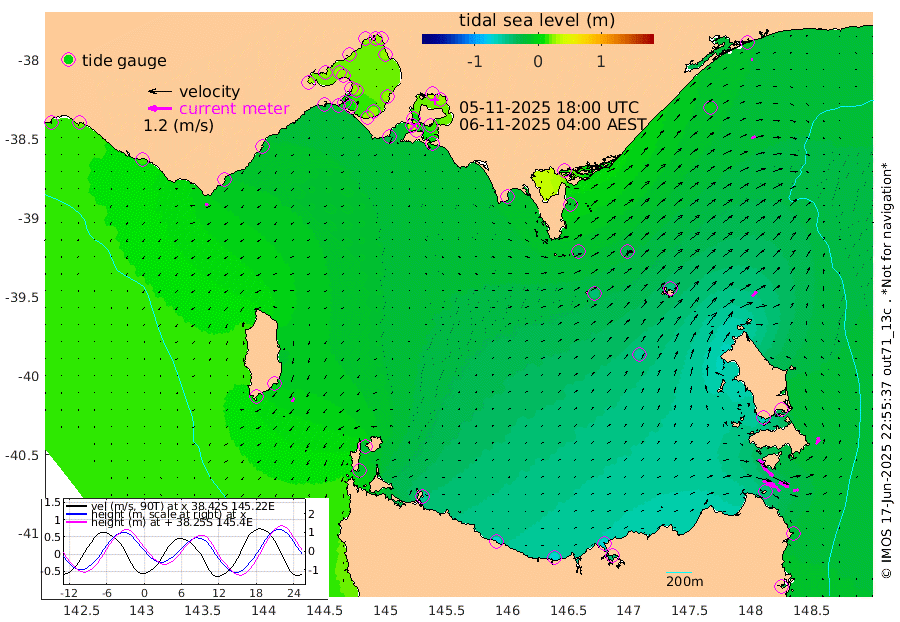 56cm/s 115T +9cm/s rms + 16cm/s 128T. CWTb1 63m 46cm/s 108T +8cm/s rms + 14cm/s 130T. C1A1 56m 48cm/s 106T +8cm/s rms + 12cm/s 12T. C1A3 27m 32cm/s 129T +0cm/s rms + 0cm/s 0T. CW1 32m 61cm/s 131T +11cm/s rms + 9cm/s 121T. CW2A1 44m 31cm/s 140T +7cm/s rms + 12cm/s 156T. CW2A2 44m 50cm/s 151T +7cm/s rms + 4cm/s 115T. CW3 33m 66cm/s 110T +9cm/s rms + 6cm/s 84T. CW4A1 30m 25cm/s 79T +5cm/s rms + 7cm/s 87T. CW4A2 36m 35cm/s 20T +9cm/s rms + 16cm/s 35T. CW6A1 37m 27cm/s 41T +6cm/s rms + 4cm/s 94T. CW6A2 31m 33cm/s 44T +4cm/s rms + 6cm/s 137T. BASS-CS91 47m 22cm/s 72T +11cm/s rms + 3cm/s -58T. BASS-CS91 70m 8cm/s 78T +10cm/s rms + 1cm/s 137T. BASS-CS91 47m 21cm/s -140T +10cm/s rms + 3cm/s 42T. BASS-CS91 53m 17cm/s -115T +8cm/s rms + 2cm/s 81T. BASS-CS91 64m 7cm/s -121T +6cm/s rms + 5cm/s 151T. BASS-UN91 115m 7cm/s -151T +4cm/s rms + 3cm/s 111T. Tas91 UNSW Mooring #1 65m 95m -9cm Lakes Entrance (Outer) -6cm Barracouta Platform -32cm Hogan Island 7cm Port Welshpool Pier -14cm Rabbit Island -31cm East Moncoeur Island -42cm Curtis Island -30cm Waratah Bay 3cm San Remo 13cm Elizabeth Island 27cm Bouchier Channel 37cm Tooradin 1cm Cowes Jetty 3cm Western Port (Stony Point) 33cm Western Port (Sandy Point) -24cm Flinders Jetty 24cm Mornington 26cm Sandringham 23cm Rosebud Jetty 23cm Hovell Pile 8cm South Channel -9cm Point Lonsdale 3cm Queenscliff 23cm West Channel Pile -22cm Barwon Heads 23cm St Leonards 27cm Point Richards (Corio Bay) 25cm Point Richards Channel 30cm Geelong 24cm Werribee 26cm Altona 27cm Wilson Spit 26cm Melbourne (Williamstown) 27cm St Kilda -18cm Lorne -9cm Apollo Bay -47cm Garden Cove -52cm Bass Pyramid 8cm Seal Bay 0cm King Island (Grassy) -15cm Stack Island -19cm Three Hummock Island -54cm Stanley -69cm Burnie -72cm Devonport -68cm Low Head -42cm Bell Bay -62cm Big River Cove -36cm Lady Barron Harbour -41cm Swan Island -19cm Eddystone Point -28cm St Helens 14cm Port Campbell 17cm Warrnambool 16cm Port Fairy