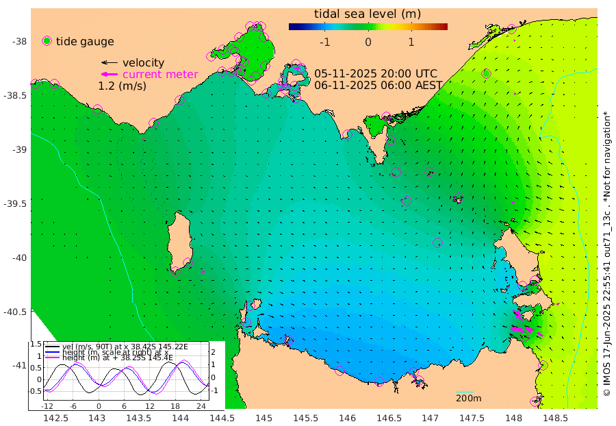 35cm/s -72T +9cm/s rms + 16cm/s 128T. CWTb1 63m 39cm/s -76T +8cm/s rms + 14cm/s 130T. C1A1 56m 105cm/s -76T +8cm/s rms + 12cm/s 12T. C1A3 27m 51cm/s -57T +0cm/s rms + 0cm/s 0T. CW1 32m 62cm/s -53T +11cm/s rms + 9cm/s 121T. CW2A1 44m 54cm/s -40T +7cm/s rms + 12cm/s 156T. CW2A2 44m 44cm/s -29T +7cm/s rms + 4cm/s 115T. CW3 33m 68cm/s -74T +9cm/s rms + 6cm/s 84T. CW4A1 30m 48cm/s -60T +5cm/s rms + 7cm/s 87T. CW4A2 36m 7cm/s -21T +9cm/s rms + 16cm/s 35T. CW6A1 37m 12cm/s -108T +6cm/s rms + 4cm/s 94T. CW6A2 31m 19cm/s -78T +4cm/s rms + 6cm/s 137T. BASS-CS91 47m 14cm/s 49T +11cm/s rms + 3cm/s -58T. BASS-CS91 70m 10cm/s 65T +10cm/s rms + 1cm/s 137T. BASS-CS91 47m 24cm/s 57T +10cm/s rms + 3cm/s 42T. BASS-CS91 53m 10cm/s 76T +8cm/s rms + 2cm/s 81T. BASS-CS91 64m 2cm/s 165T +6cm/s rms + 5cm/s 151T. BASS-UN91 115m 4cm/s 40T +4cm/s rms + 3cm/s 111T. Tas91 UNSW Mooring #1 65m 95m 27cm Lakes Entrance (Outer) 13cm Barracouta Platform -27cm Hogan Island -32cm Port Welshpool Pier -28cm Rabbit Island -42cm East Moncoeur Island -43cm Curtis Island -61cm Waratah Bay -63cm San Remo -55cm Elizabeth Island -59cm Bouchier Channel -49cm Tooradin -58cm Cowes Jetty -57cm Western Port (Stony Point) -55cm Western Port (Sandy Point) -54cm Flinders Jetty 10cm Mornington 9cm Sandringham 10cm Rosebud Jetty 9cm Hovell Pile -6cm South Channel -27cm Point Lonsdale -10cm Queenscliff 8cm West Channel Pile -42cm Barwon Heads 8cm St Leonards 9cm Point Richards (Corio Bay) 7cm Point Richards Channel 10cm Geelong 12cm Werribee 8cm Altona 9cm Wilson Spit 9cm Melbourne (Williamstown) 9cm St Kilda -40cm Lorne -28cm Apollo Bay -25cm Garden Cove -52cm Bass Pyramid -12cm Seal Bay -25cm King Island (Grassy) -87cm Stack Island -70cm Three Hummock Island -96cm Stanley -93cm Burnie -91cm Devonport -89cm Low Head -94cm Bell Bay -61cm Big River Cove -14cm Lady Barron Harbour 4cm Swan Island 26cm Eddystone Point 3cm St Helens 1cm Port Campbell -6cm Warrnambool -7cm Port Fairy