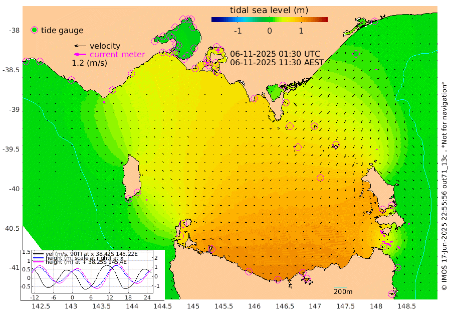 9cm/s 90T +9cm/s rms + 16cm/s 128T. CWTb1 63m 15cm/s 98T +8cm/s rms + 14cm/s 130T. C1A1 56m 60cm/s 105T +8cm/s rms + 12cm/s 12T. C1A3 27m 28cm/s 124T +0cm/s rms + 0cm/s 0T. CW1 32m 29cm/s 128T +11cm/s rms + 9cm/s 121T. CW2A1 44m 31cm/s 135T +7cm/s rms + 12cm/s 156T. CW2A2 44m 23cm/s 152T +7cm/s rms + 4cm/s 115T. CW3 33m 32cm/s 101T +9cm/s rms + 6cm/s 84T. CW4A1 30m 32cm/s 131T +5cm/s rms + 7cm/s 87T. CW4A2 36m 14cm/s -173T +9cm/s rms + 16cm/s 35T. CW6A1 37m 16cm/s -179T +6cm/s rms + 4cm/s 94T. CW6A2 31m 10cm/s 160T +4cm/s rms + 6cm/s 137T. BASS-CS91 47m 9cm/s -142T +11cm/s rms + 3cm/s -58T. BASS-CS91 70m 3cm/s -119T +10cm/s rms + 1cm/s 137T. BASS-CS91 47m 11cm/s -99T +10cm/s rms + 3cm/s 42T. BASS-CS91 53m 9cm/s -90T +8cm/s rms + 2cm/s 81T. BASS-CS91 64m 21cm/s 0T +6cm/s rms + 5cm/s 151T. BASS-UN91 115m 11cm/s -34T +4cm/s rms + 3cm/s 111T. Tas91 UNSW Mooring #1 65m 95m 6cm Lakes Entrance (Outer) 5cm Barracouta Platform 64cm Hogan Island 64cm Port Welshpool Pier 60cm Rabbit Island 73cm East Moncoeur Island 75cm Curtis Island 85cm Waratah Bay 71cm San Remo 63cm Elizabeth Island 58cm Bouchier Channel 45cm Tooradin 64cm Cowes Jetty 66cm Western Port (Stony Point) 57cm Western Port (Sandy Point) 66cm Flinders Jetty 4cm Mornington 3cm Sandringham 6cm Rosebud Jetty 5cm Hovell Pile 19cm South Channel 38cm Point Lonsdale 25cm Queenscliff 6cm West Channel Pile 47cm Barwon Heads 5cm St Leonards 5cm Point Richards (Corio Bay) 5cm Point Richards Channel 2cm Geelong 2cm Werribee 3cm Altona 5cm Wilson Spit 4cm Melbourne (Williamstown) 5cm St Kilda 47cm Lorne 33cm Apollo Bay 64cm Garden Cove 86cm Bass Pyramid 9cm Seal Bay 22cm King Island (Grassy) 64cm Stack Island 77cm Three Hummock Island 117cm Stanley 121cm Burnie 122cm Devonport 119cm Low Head 115cm Bell Bay 95cm Big River Cove 49cm Lady Barron Harbour 34cm Swan Island 12cm Eddystone Point 39cm St Helens 2cm Port Campbell -1cm Warrnambool -1cm Port Fairy