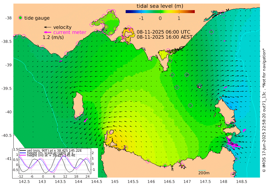 102cm/s 112T +9cm/s rms + 16cm/s 128T. CWTb1 63m 96cm/s 105T +8cm/s rms + 14cm/s 130T. C1A1 56m 168cm/s 104T +8cm/s rms + 12cm/s 12T. C1A3 27m 99cm/s 128T +0cm/s rms + 0cm/s 0T. CW1 32m 141cm/s 130T +11cm/s rms + 9cm/s 121T. CW2A1 44m 105cm/s 144T +7cm/s rms + 12cm/s 156T. CW2A2 44m 109cm/s 152T +7cm/s rms + 4cm/s 115T. CW3 33m 148cm/s 110T +9cm/s rms + 6cm/s 84T. CW4A1 30m 81cm/s 101T +5cm/s rms + 7cm/s 87T. CW4A2 36m 50cm/s 18T +9cm/s rms + 16cm/s 35T. CW6A1 37m 72cm/s 42T +6cm/s rms + 4cm/s 94T. CW6A2 31m 55cm/s 65T +4cm/s rms + 6cm/s 137T. BASS-CS91 47m 22cm/s 82T +11cm/s rms + 3cm/s -58T. BASS-CS91 70m 11cm/s 74T +10cm/s rms + 1cm/s 137T. BASS-CS91 47m 87cm/s -135T +10cm/s rms + 3cm/s 42T. BASS-CS91 53m 49cm/s -112T +8cm/s rms + 2cm/s 81T. BASS-CS91 64m 23cm/s -85T +6cm/s rms + 5cm/s 151T. BASS-UN91 115m 23cm/s -144T +4cm/s rms + 3cm/s 111T. Tas91 UNSW Mooring #1 65m 95m -41cm Lakes Entrance (Outer) -25cm Barracouta Platform -21cm Hogan Island 50cm Port Welshpool Pier 0cm Rabbit Island -6cm East Moncoeur Island -14cm Curtis Island 5cm Waratah Bay 44cm San Remo 55cm Elizabeth Island 81cm Bouchier Channel 87cm Tooradin 33cm Cowes Jetty 38cm Western Port (Stony Point) 85cm Western Port (Sandy Point) -13cm Flinders Jetty 24cm Mornington 26cm Sandringham 22cm Rosebud Jetty 23cm Hovell Pile 7cm South Channel -12cm Point Lonsdale 0cm Queenscliff 23cm West Channel Pile -18cm Barwon Heads 24cm St Leonards 29cm Point Richards (Corio Bay) 28cm Point Richards Channel 31cm Geelong 23cm Werribee 27cm Altona 30cm Wilson Spit 27cm Melbourne (Williamstown) 28cm St Kilda -33cm Lorne -38cm Apollo Bay -36cm Garden Cove -9cm Bass Pyramid -35cm Seal Bay -30cm King Island (Grassy) 63cm Stack Island 43cm Three Hummock Island 42cm Stanley 20cm Burnie 14cm Devonport 18cm Low Head 63cm Bell Bay -7cm Big River Cove -30cm Lady Barron Harbour -57cm Swan Island -51cm Eddystone Point -26cm St Helens -40cm Port Campbell -39cm Warrnambool -38cm Port Fairy